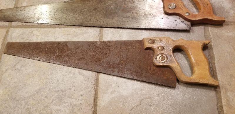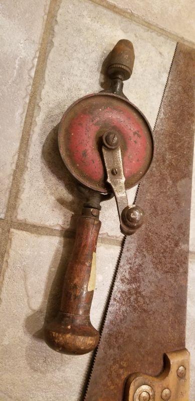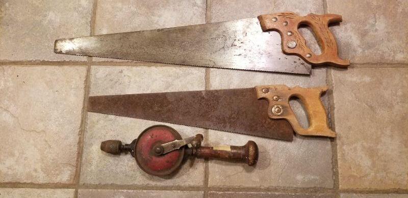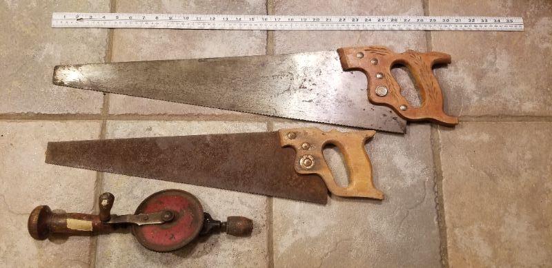 Lot #171: Group of Vintage Hand Saws and Drill Press