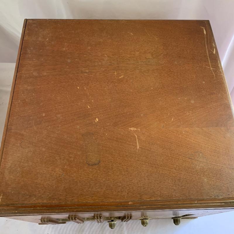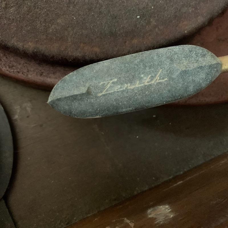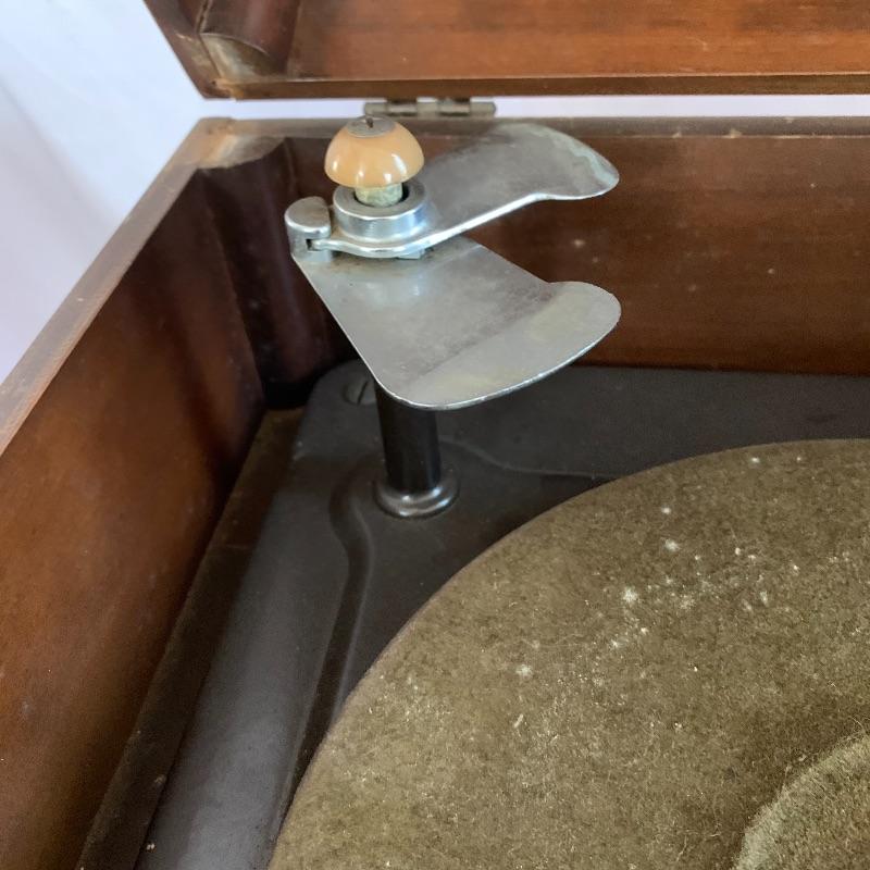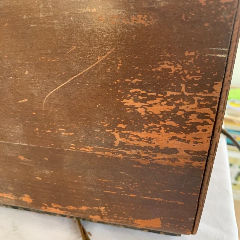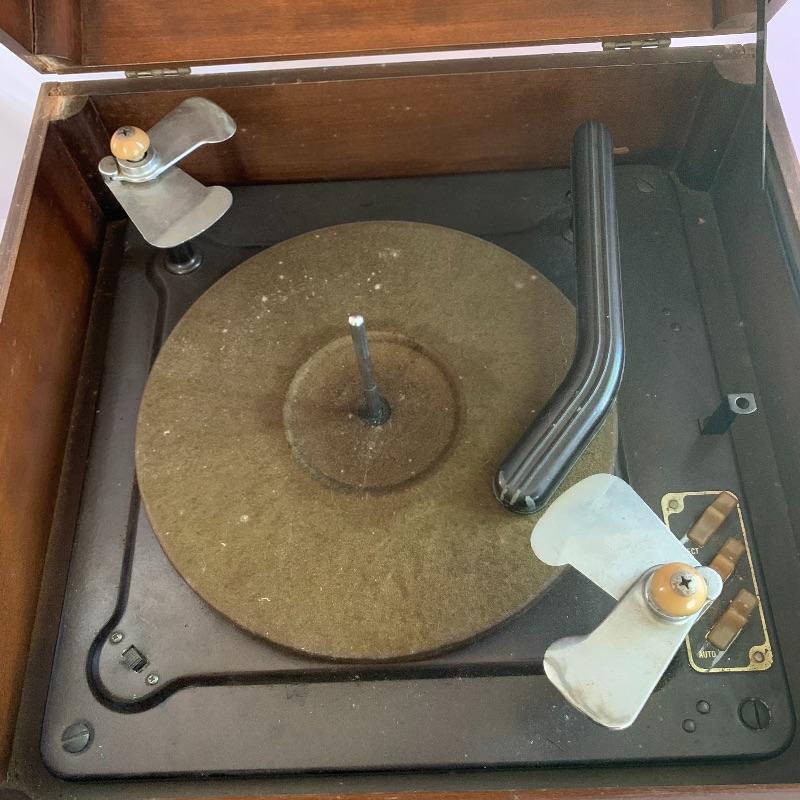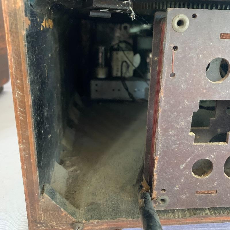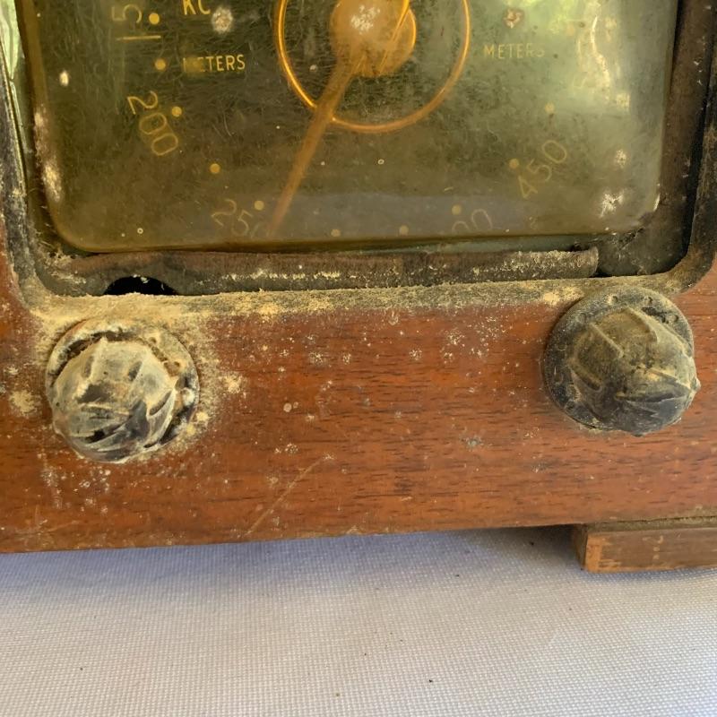 This lot includes two vintage wooden Zenith radio and turntables. The smaller turntable made of a lightweight wood that has some stains and discolouration (see photos). It also has a rusted dial on the front. The cord appears to be rusty. It measures about 15.5in x 16in x 10.5in. The bigger turntable is made of a lightweight reddish color wood. The wood has some scratches on it (see photos). The dials and front panels have rust and signs of aging. The cord has duct tape on it. It measures about 15.5in x 16.5in x 13in. Cannot confirm either turntable works.