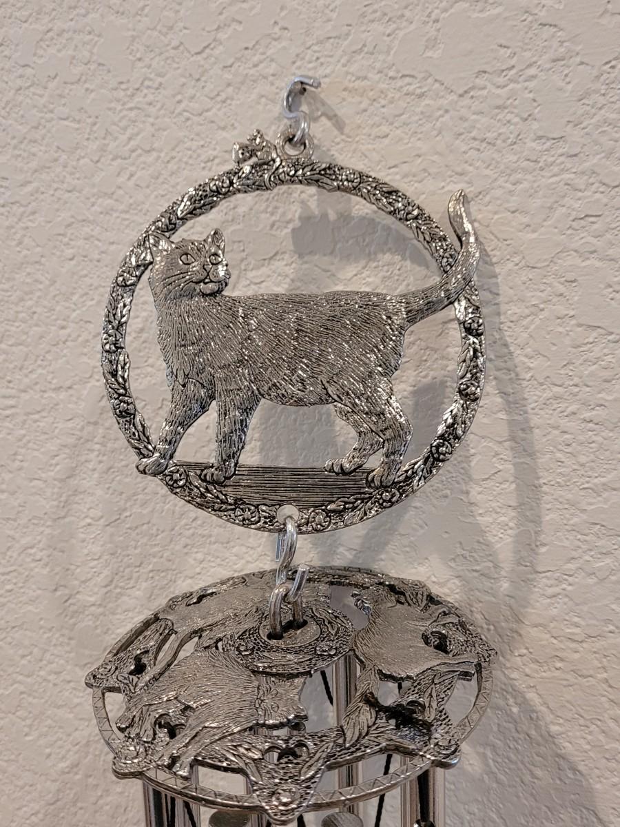 Lot 171: Whispering Winds Pewter Cat Wind Chime