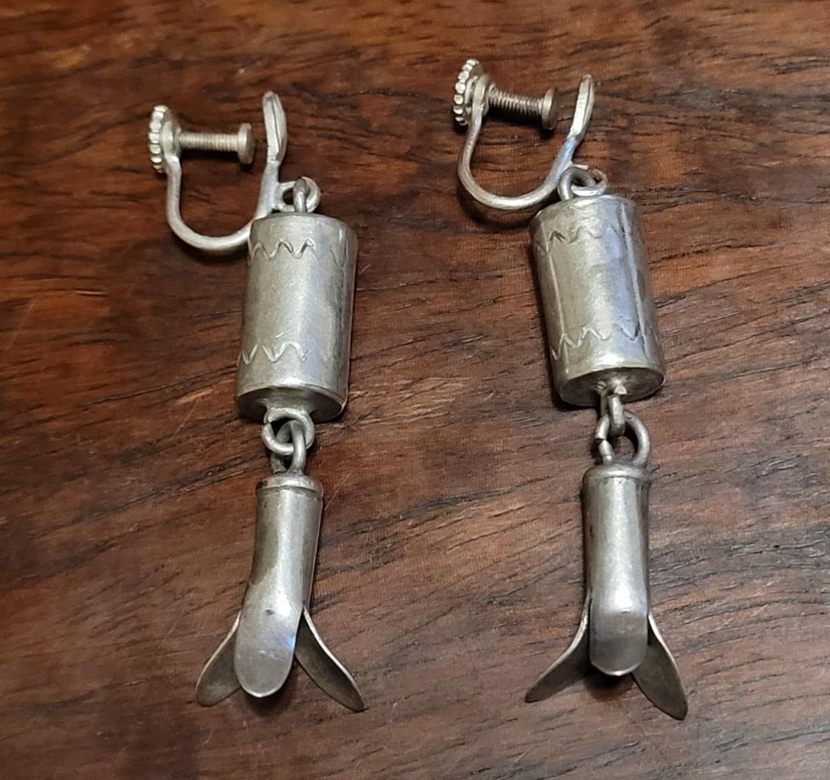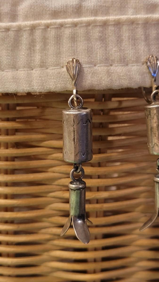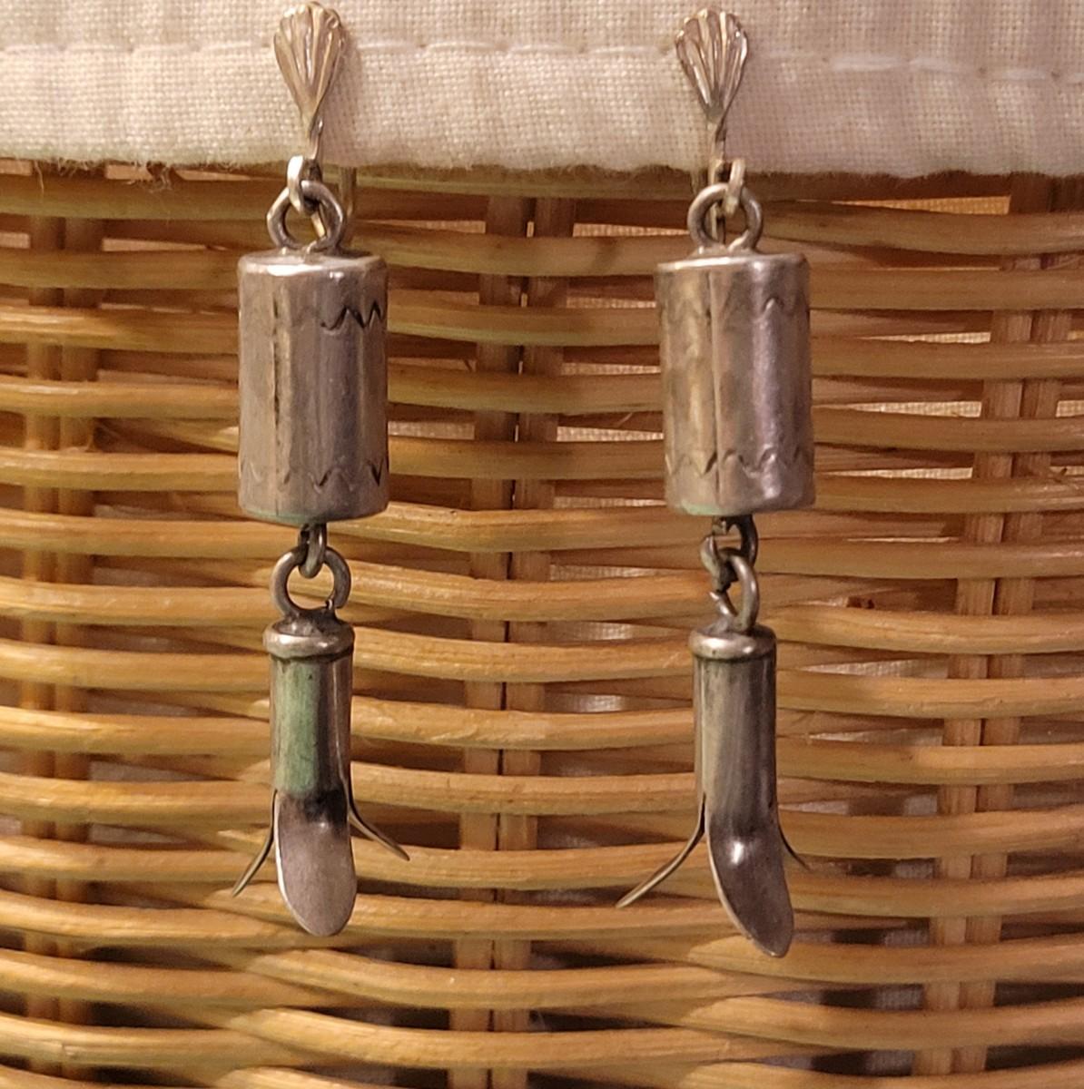 Old Pawn Silver Squash Blossom Earrings. Not marked.