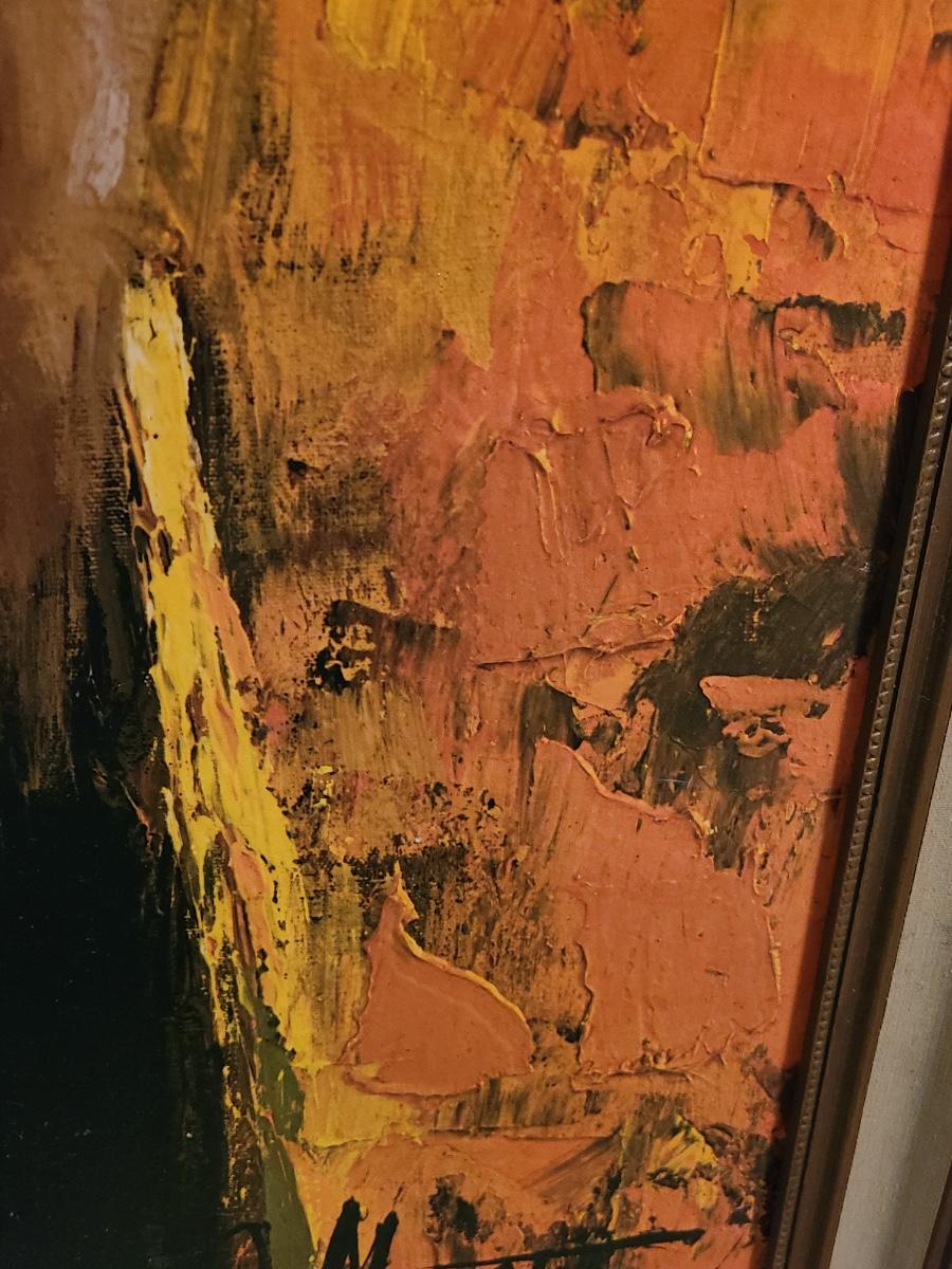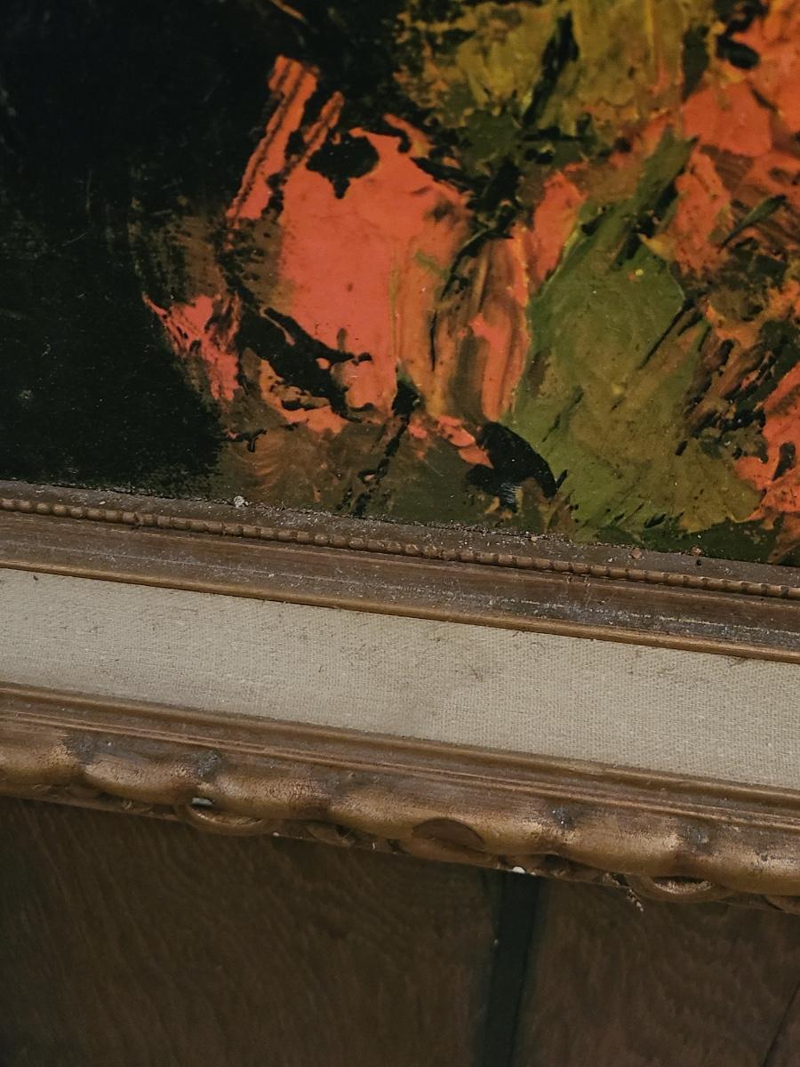 This lovely piece pops with color! It is a vintage cardboard print, in a fabric lined, wood frame (The fabric shows wear due to age and could use a cleaning). Please see all pictures as they are the best representation of the items. The pictures show condition, measurements if taken, and what is included in the lot. Due to the large amount that we photograph and the time frame, we are not always able to take measurements. All items unless noted, are pre-owned and have been used. If you purchased furniture, you must bring help. We do not allow one person to carry large furniture out on their own. Bring help, tools and a truck for the safety of our client’s homes, and your personal safety. Company policy. Thank you.