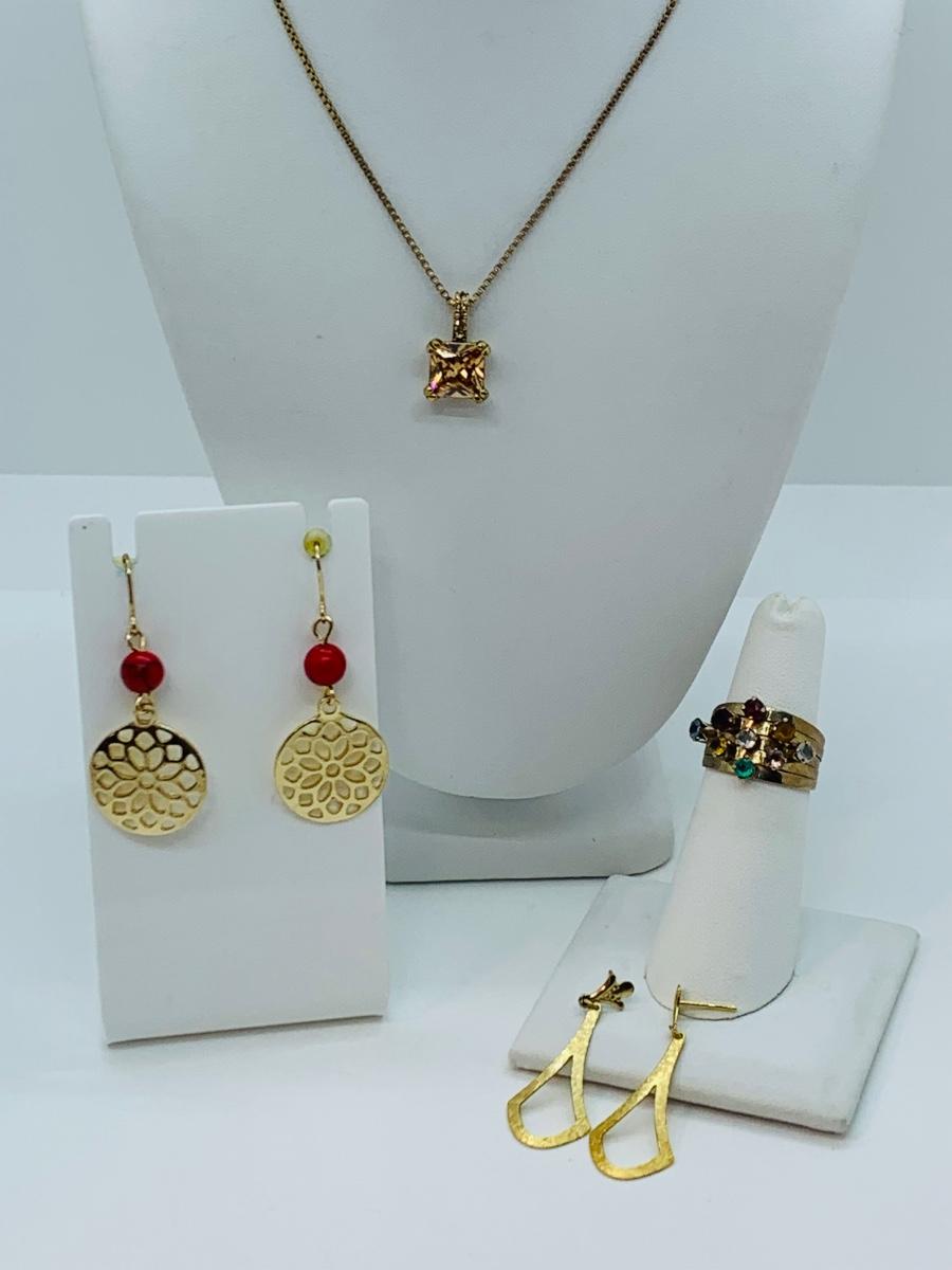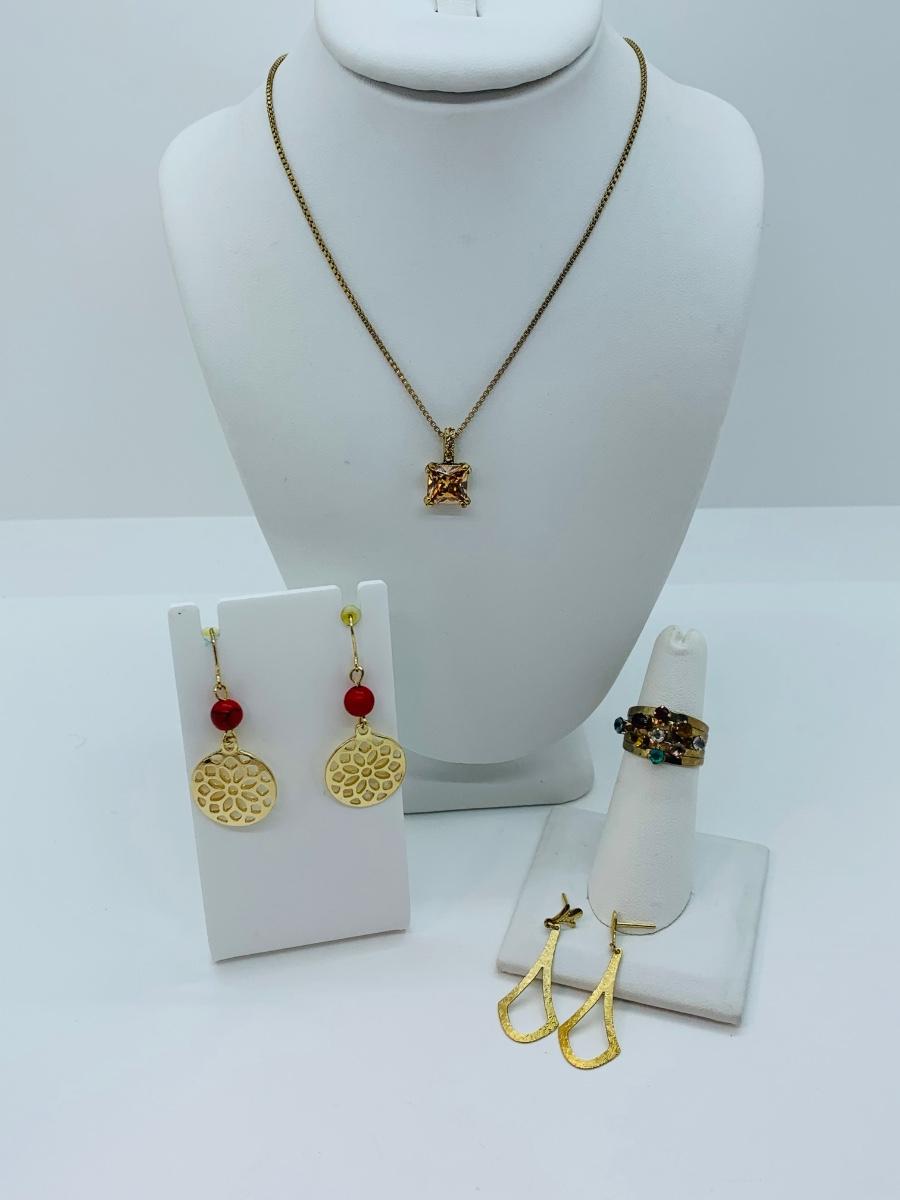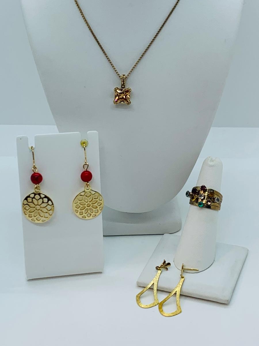 Lot 171J: Monet  Faux Gemstone Necklace, Earrings, & Multi Faux Gemstone Ring