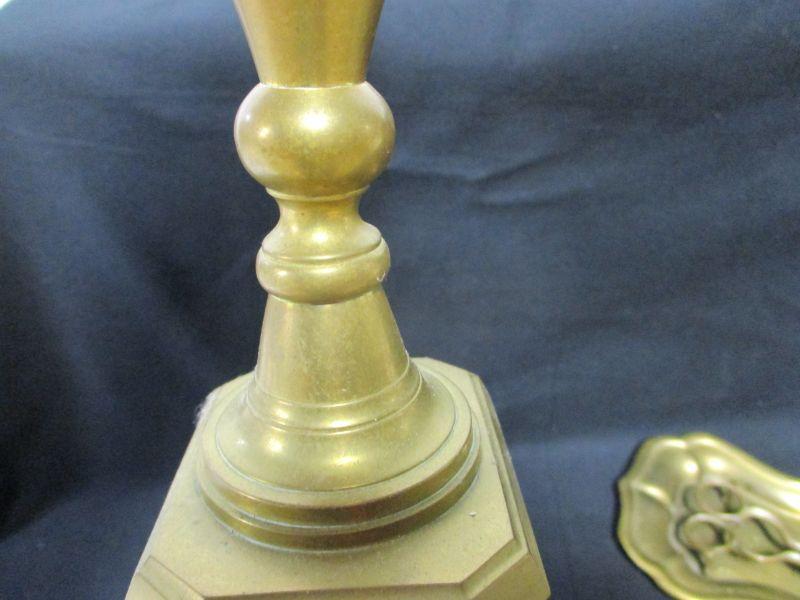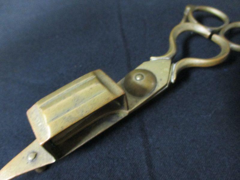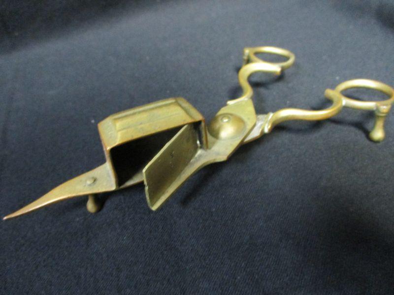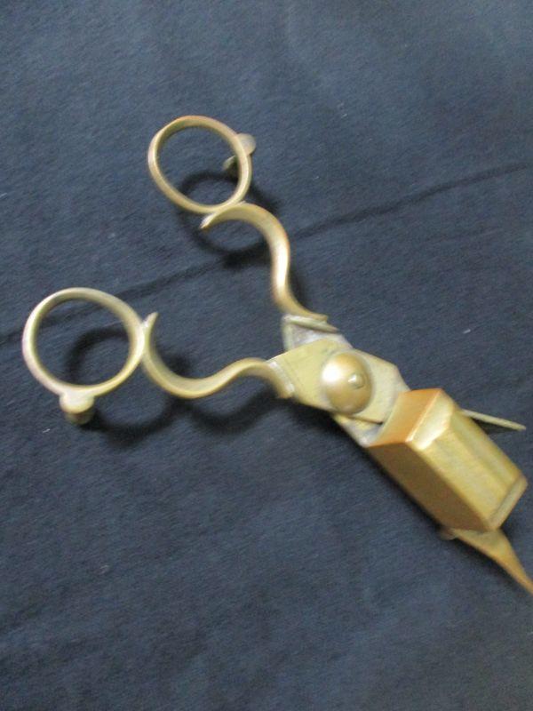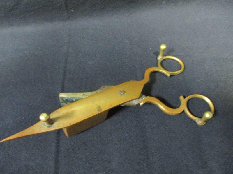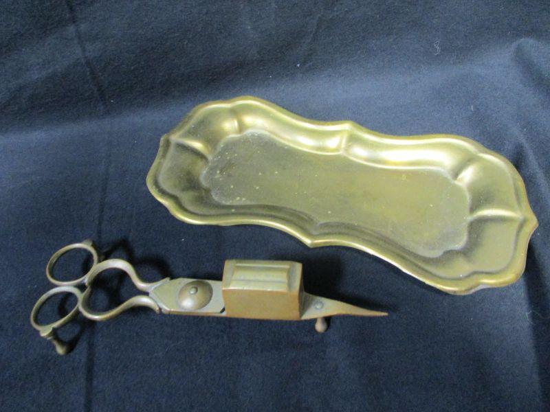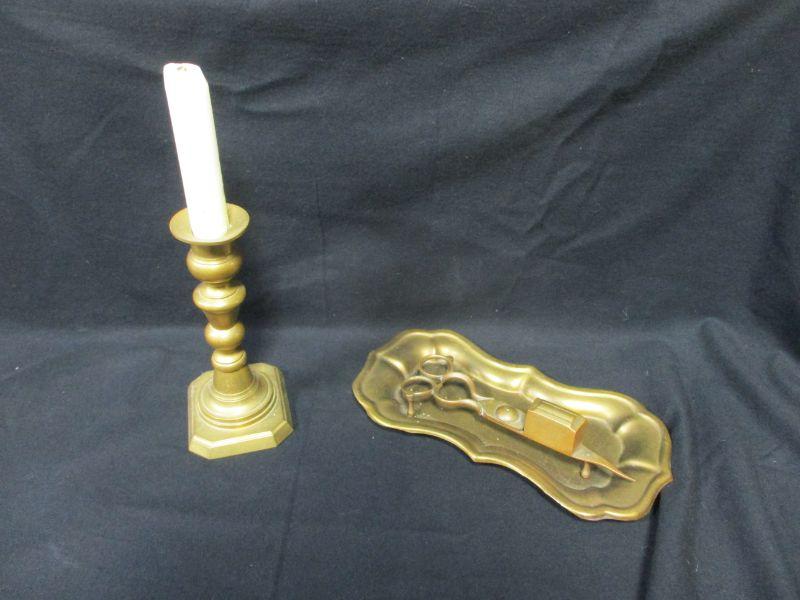 Antique Brass Candle Holder & Scissor Snuffer With Tray