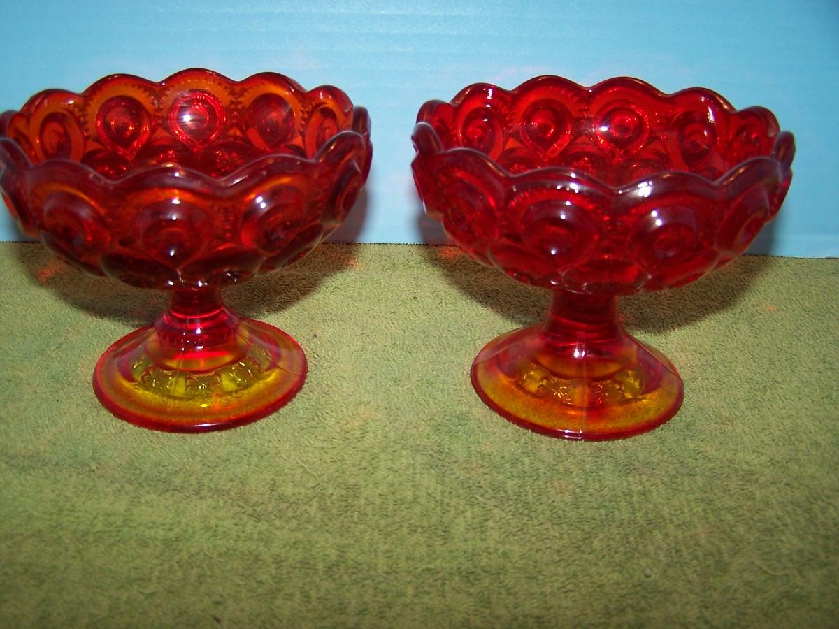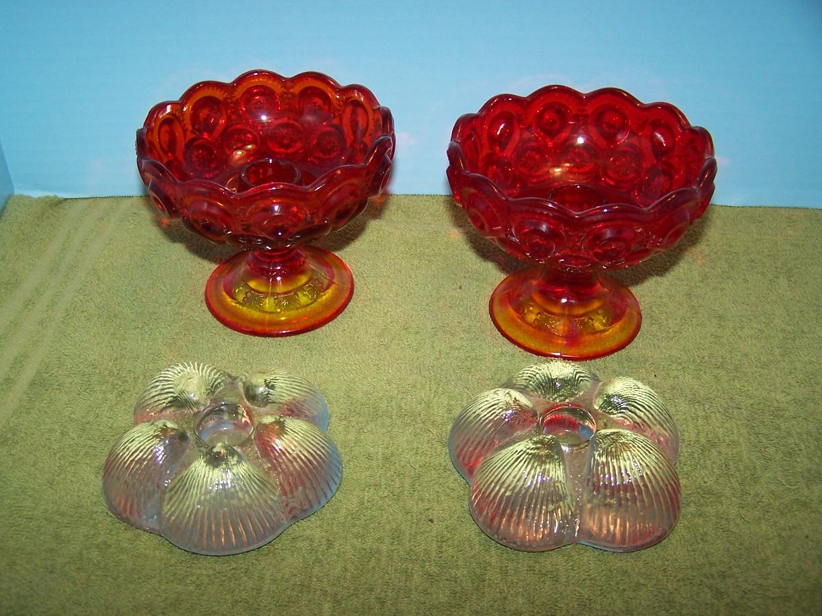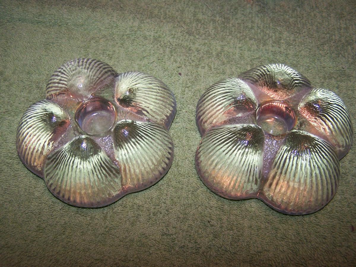 THESE ARE BEAUTIFUL MID-CENTURY ART GLASS CANDLE HOLDERS!!! THE AMBERINA PAIR ARE 3 7/8''' TALL... SLIGHT WEAR...