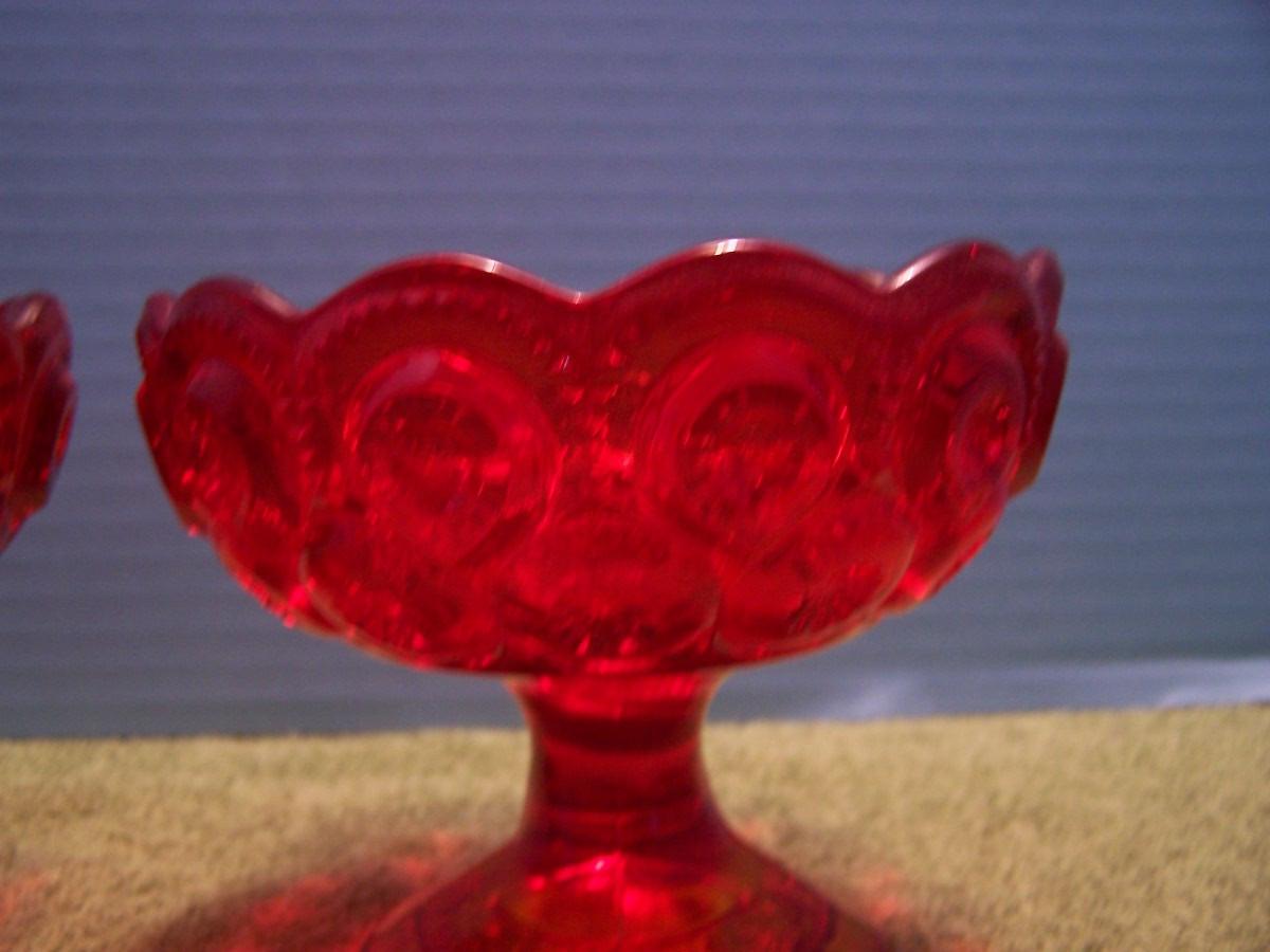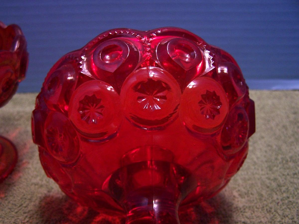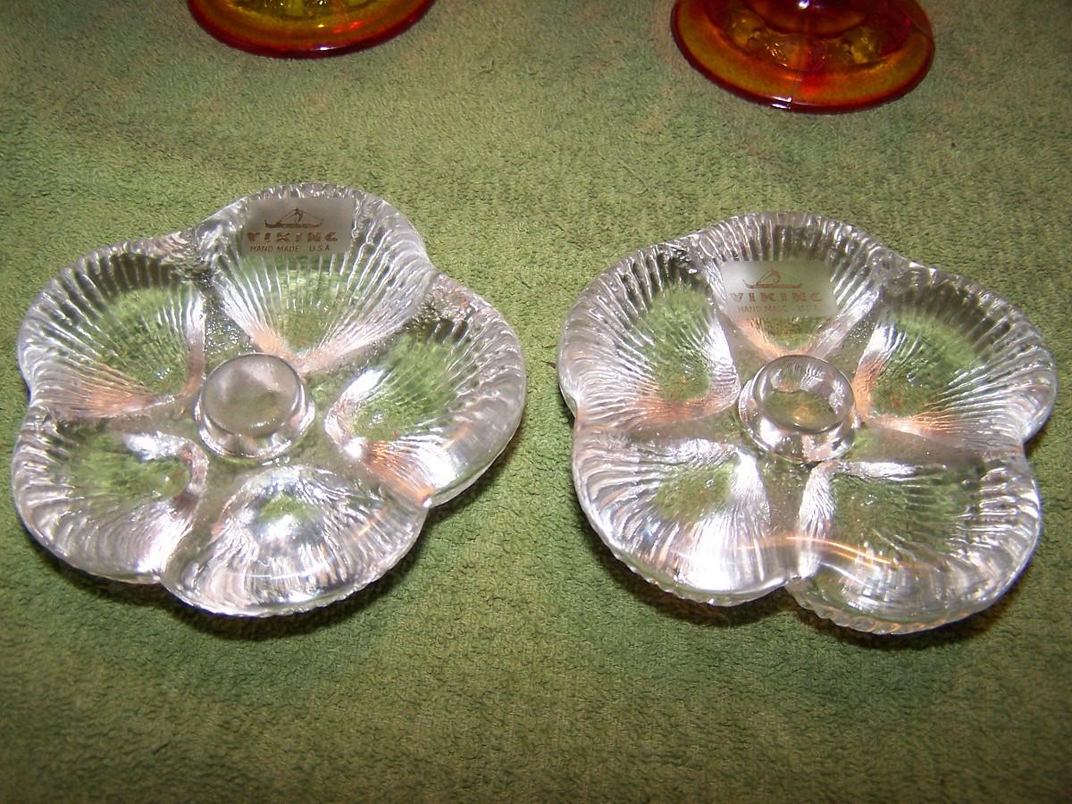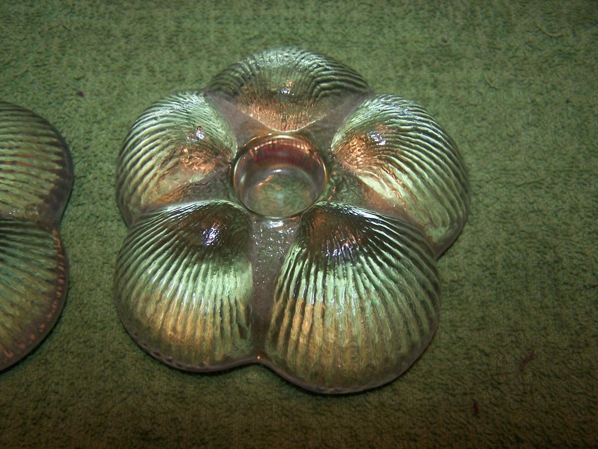 THESE ARE BEAUTIFUL MID-CENTURY ART GLASS CANDLE HOLDERS!!! THE AMBERINA PAIR ARE 3 7/8''' TALL... SLIGHT WEAR...