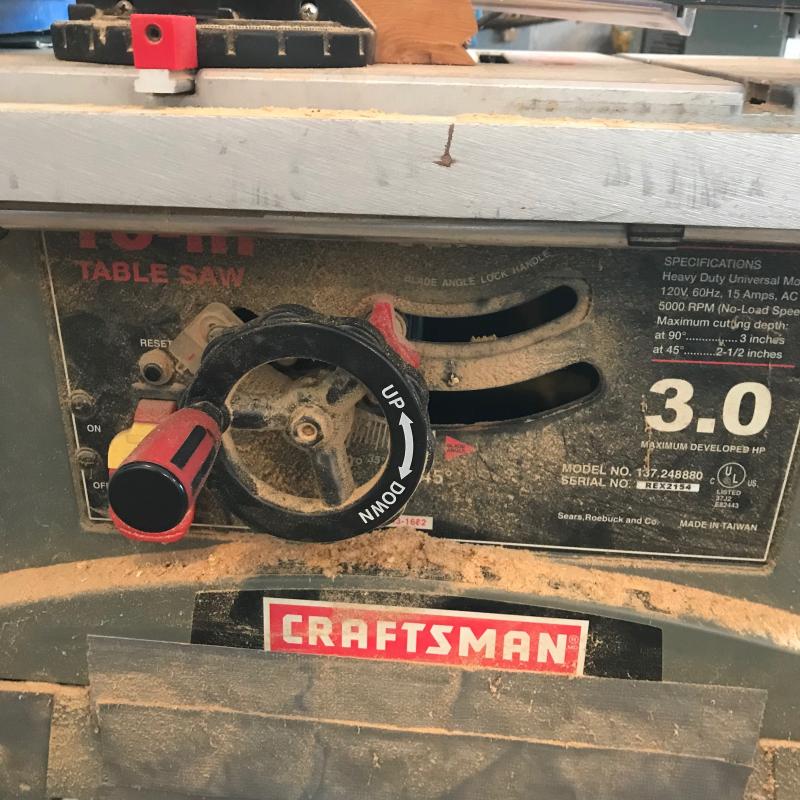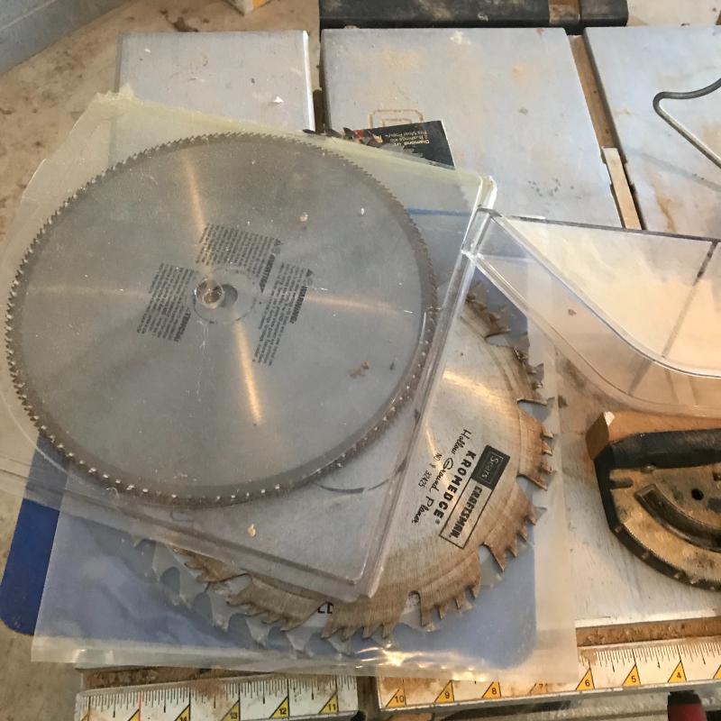 3.0 table saw with blades. Cannot guarantee functionality of unit. Blade turns, but when plugged in and switched on, does not run. Lot is available for local pick up in Flat Rock, NC only.