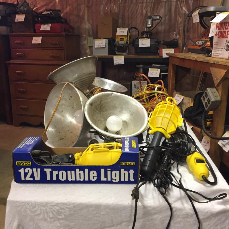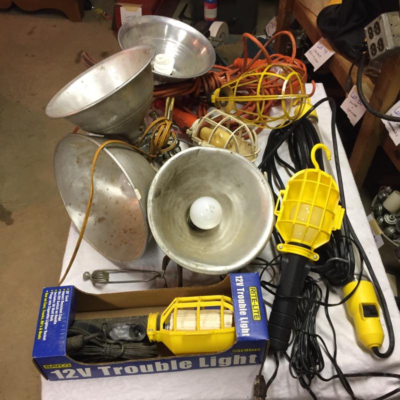 Large selection of Drop Lights with clamp lights. Some are new in box.