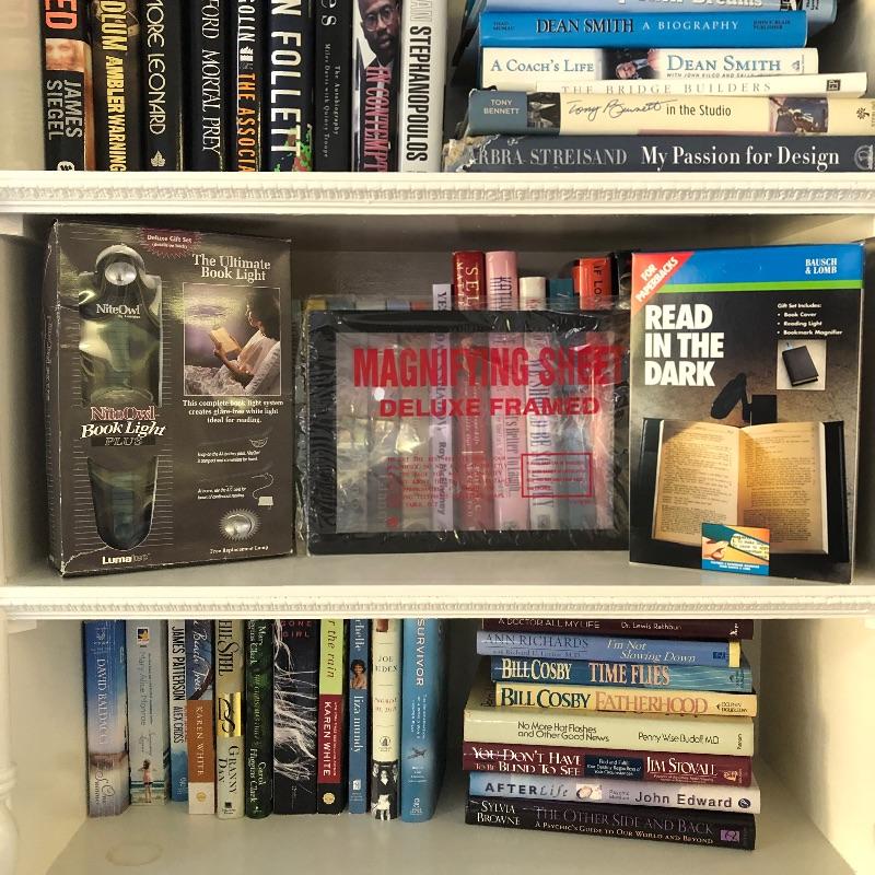 Really nice assortment of must read books and for those of you that are young at heart but still need some extra light while reading, the ultimate book light system, deluxe framed magnifying sheet and read in the dark paperback light is just what the doctor ordered.