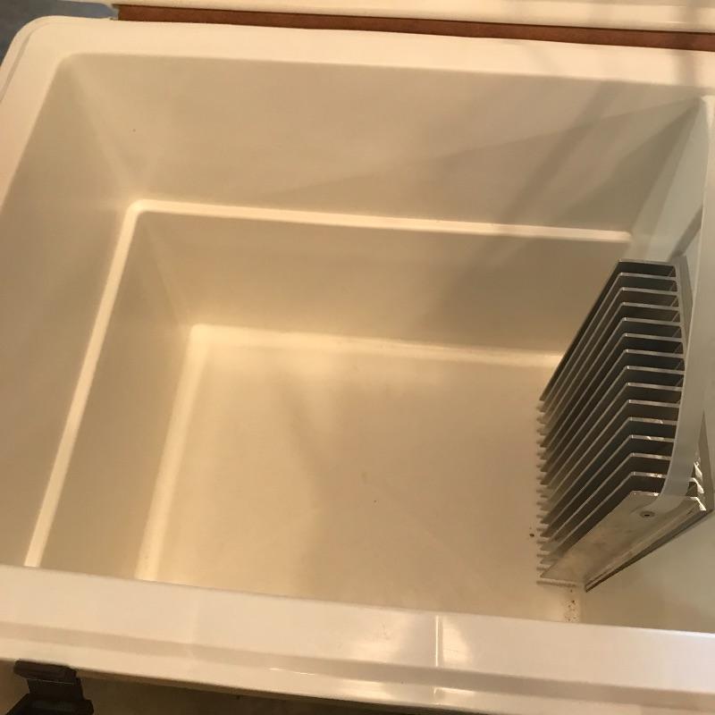 This very cool cooler is just what you need for this summer’s backyard bbqs and “glamping” adventures. Comes with power adapter and AC/DC converter. Did not check function. Approx. 21” x 16” x 16” h. Local pickup only.
