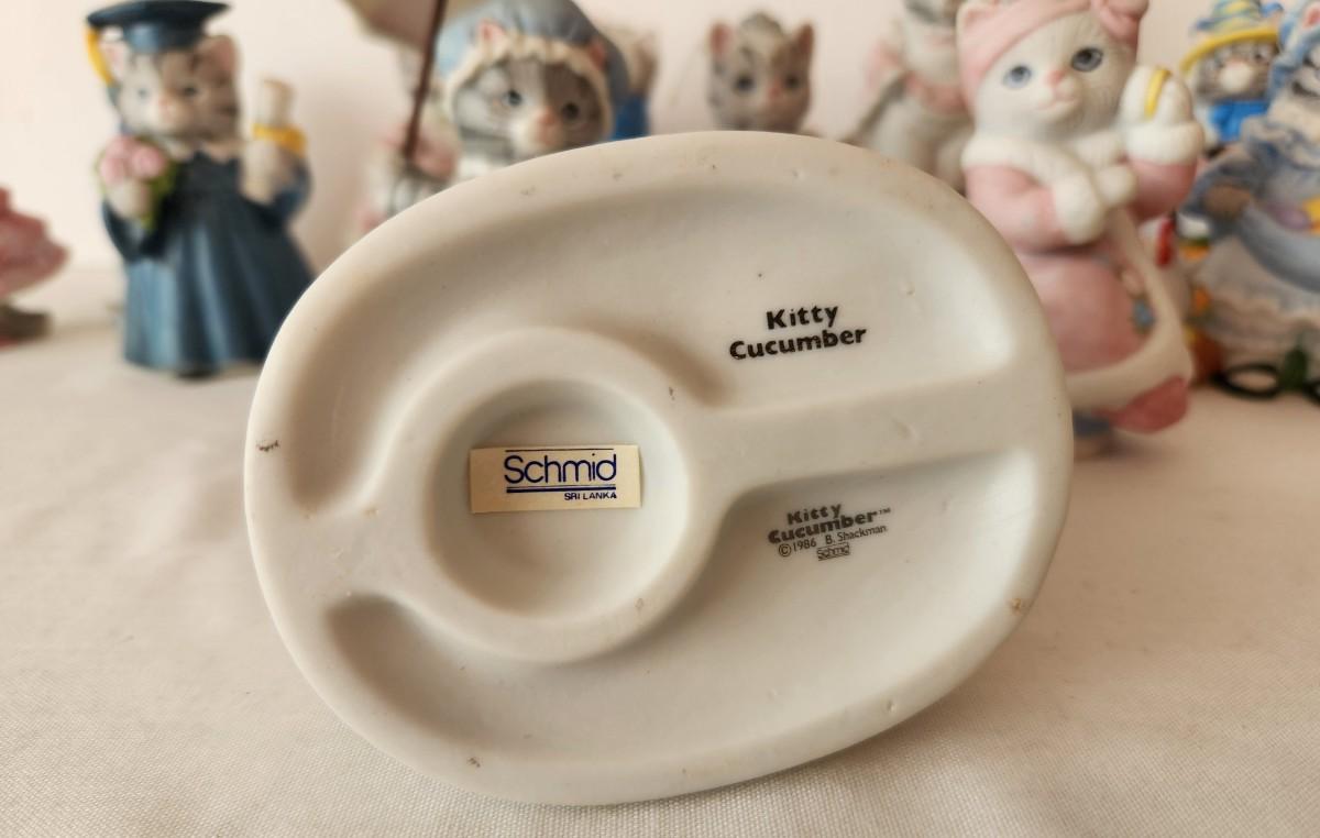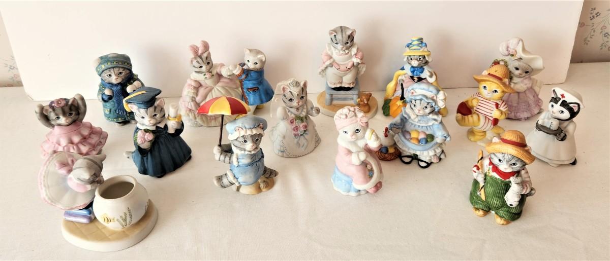 You get all you see here - good ebay lot - 15 pieces bisque porcelain Kitty Cucumber figures, no two alike. Average height 3.5" tall. These were made in the 1980's.