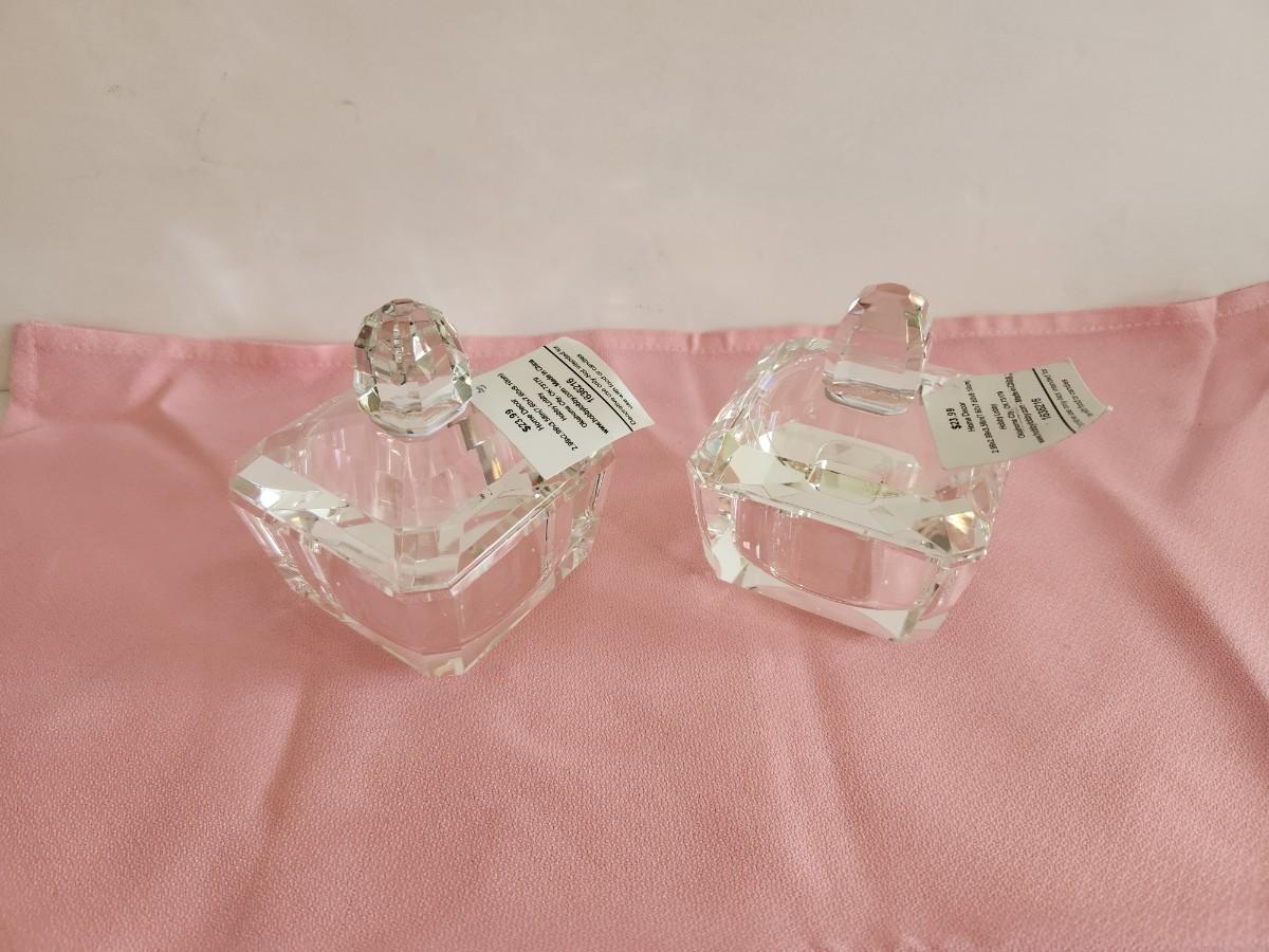 Pair of cute crystal trinket boxes with lids - new with tags - retail price $23.99 each. 3" across, 3.5" tall.