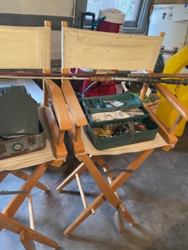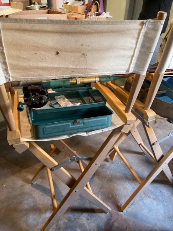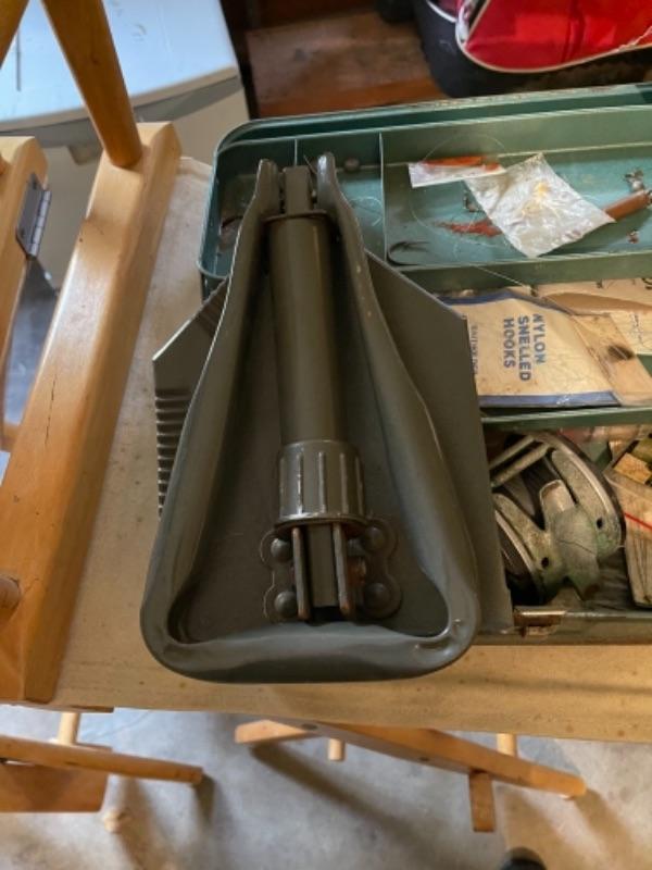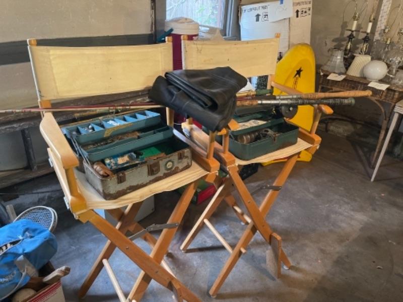 Lot 171. Lot of fishing gear, poles, inner tubes, director chairs, folding shovel, etc.--Was $60 - -Now $30