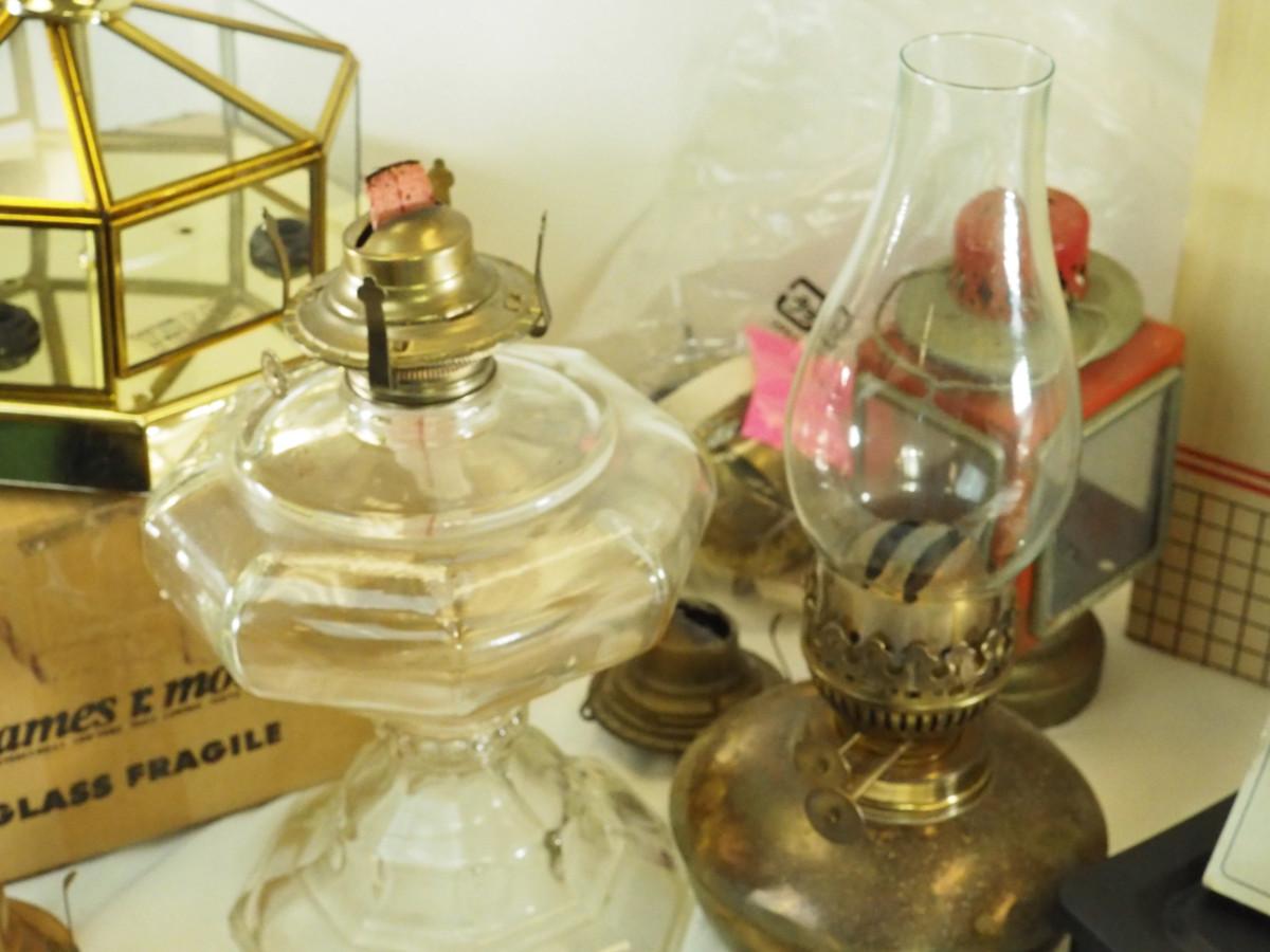 Lot 171- Oil lamps, vintage 1970 electric ceiling lights, burners