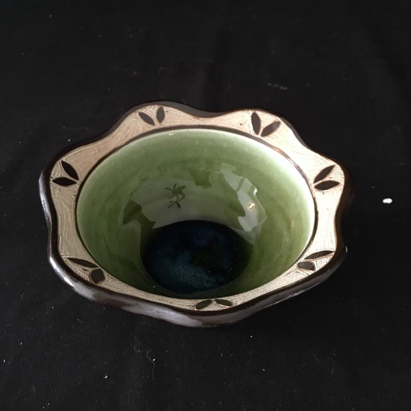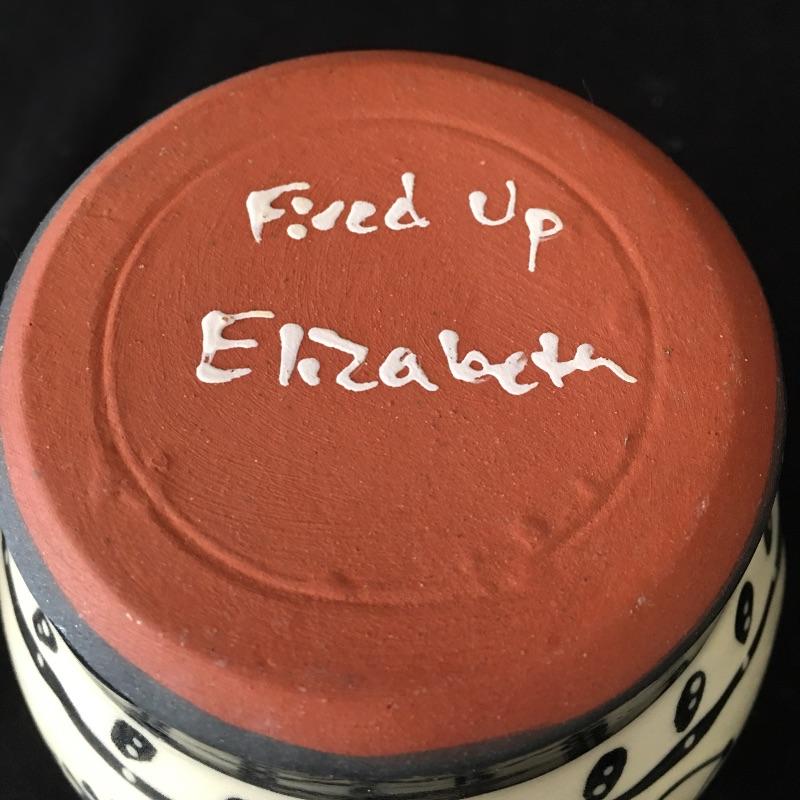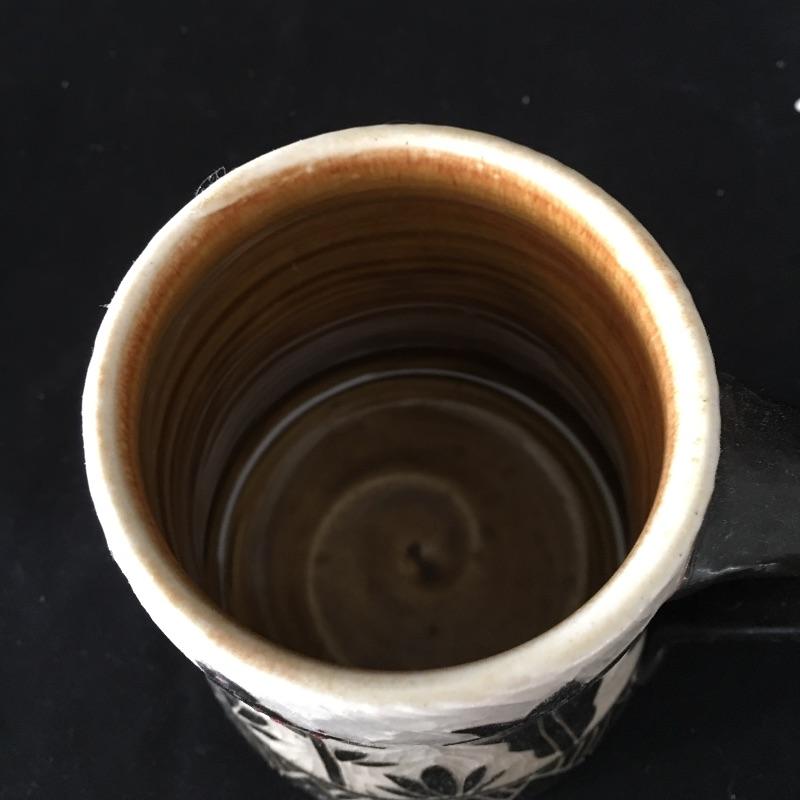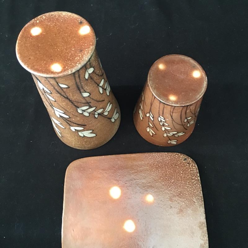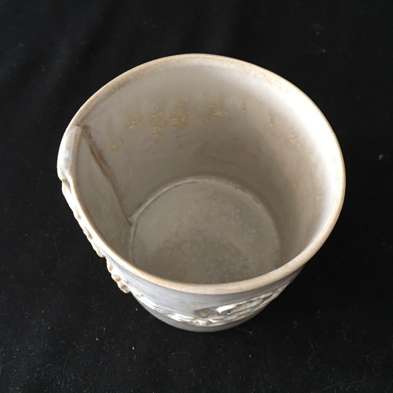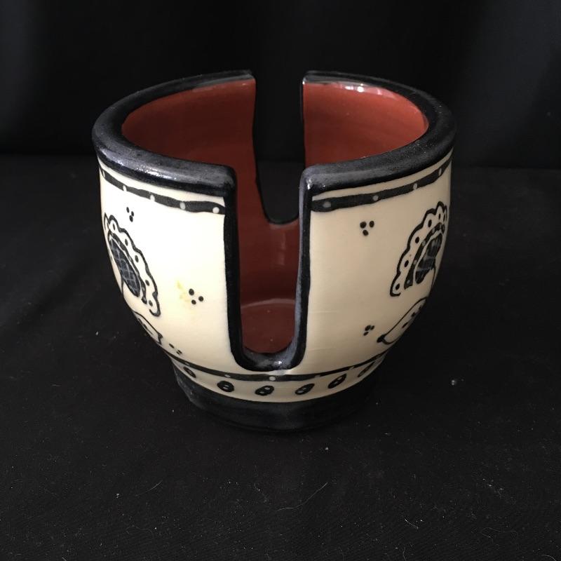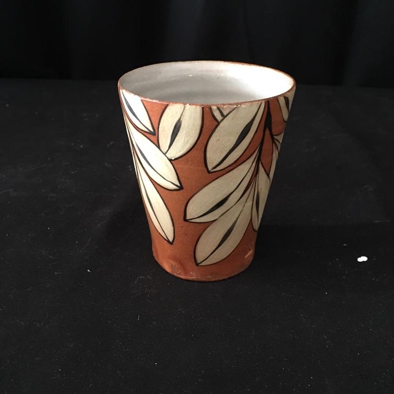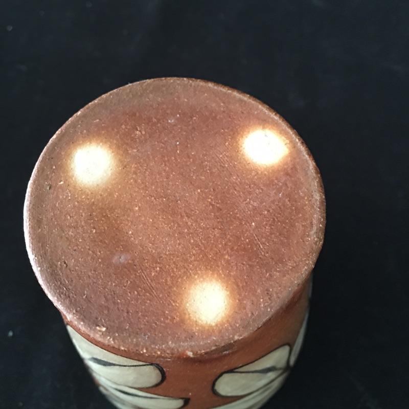 This collection of pottery includes three cups, trivet, mini vase, three mugs, bowl, basket and a cup with slots in the side. All pieces are signed, see pictures. Tallest cup measures 3.5”D x 6.5” tall.
