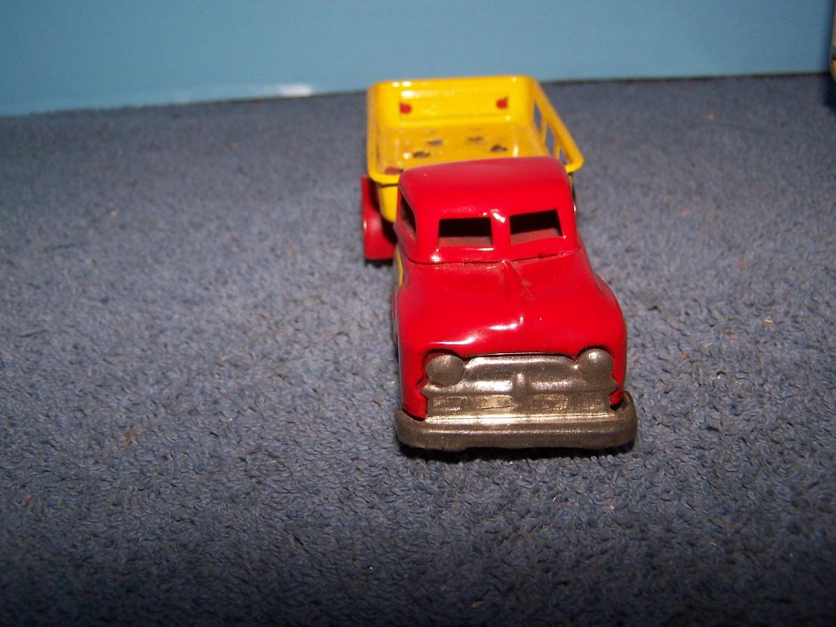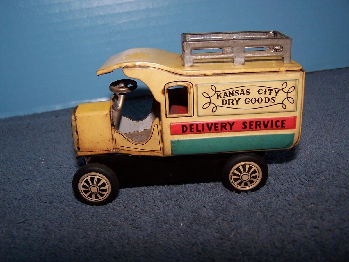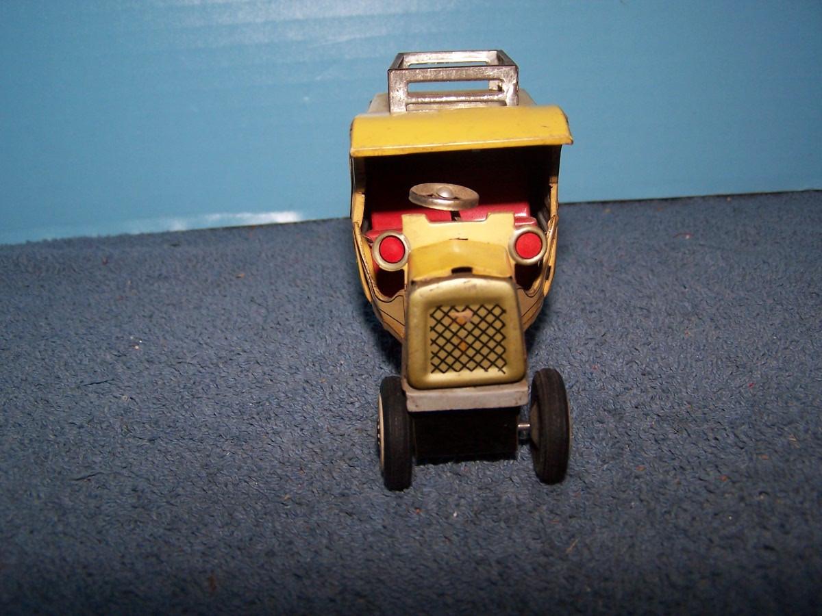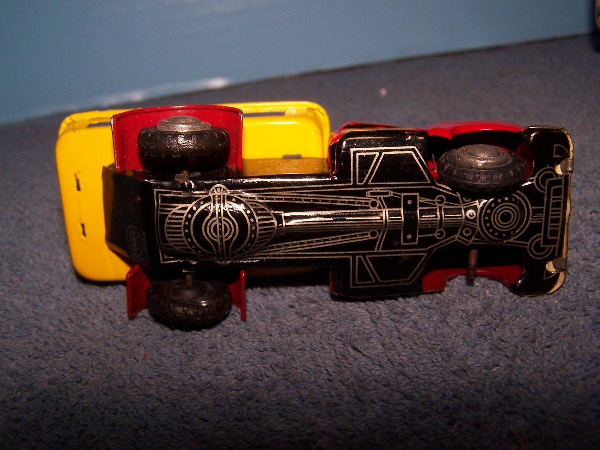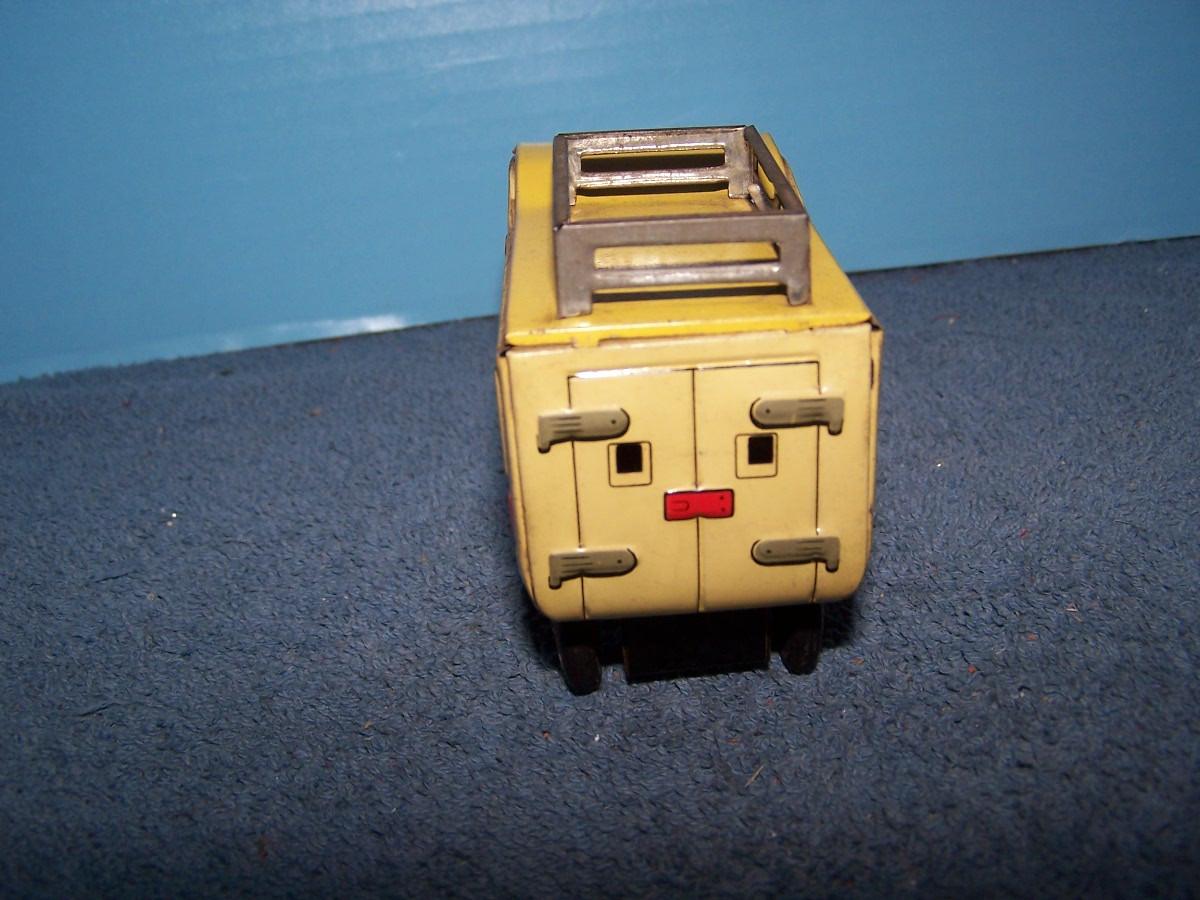 THESE ARE GREAT VINTAGE TIN LITHO VEHICLES!!! FRICTION WORKS.. 2 TRUCKS ARE 4 1/2'' LONG.. 1 TRUCK IS MISSING A TIRE.. ALL TOYS HAVE BEEN PLAYED WITH..