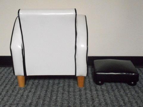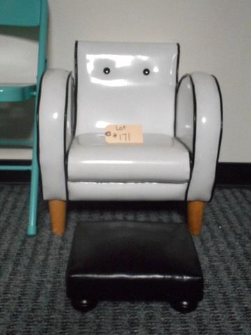 Lot 171 - White Patent Leather Youth Chair with Black Foot Stool