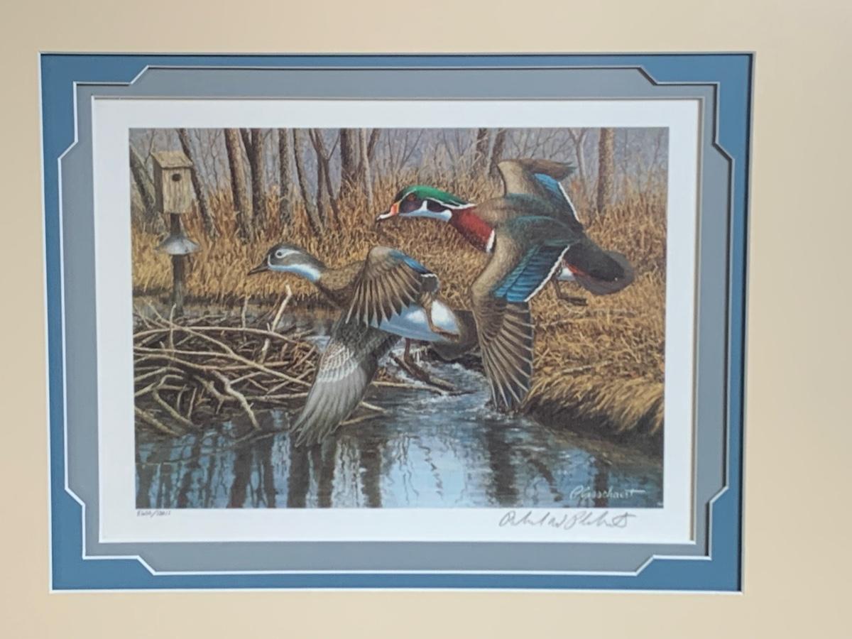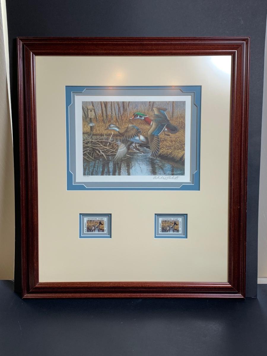 Lot 171R: Framed,Signed Waterfowl Print & Stamps