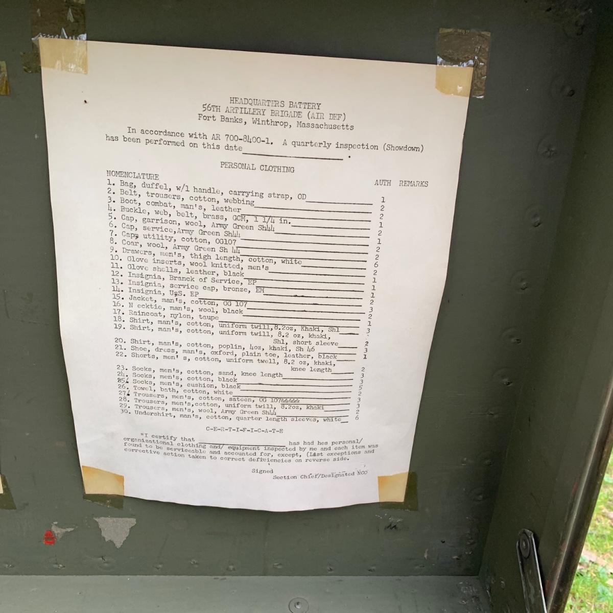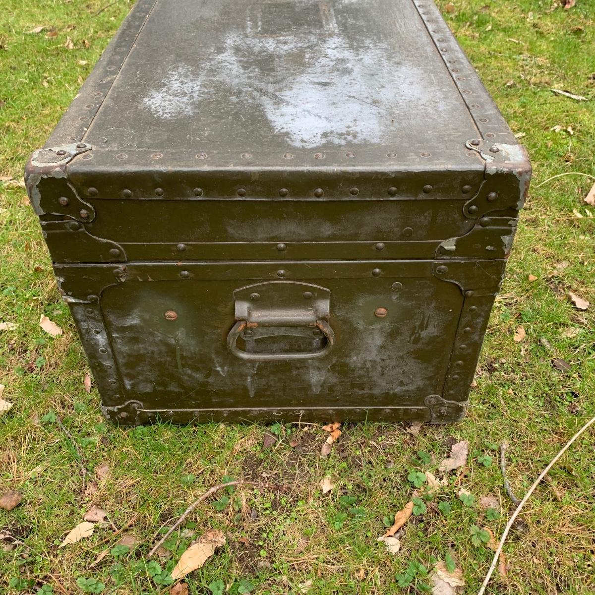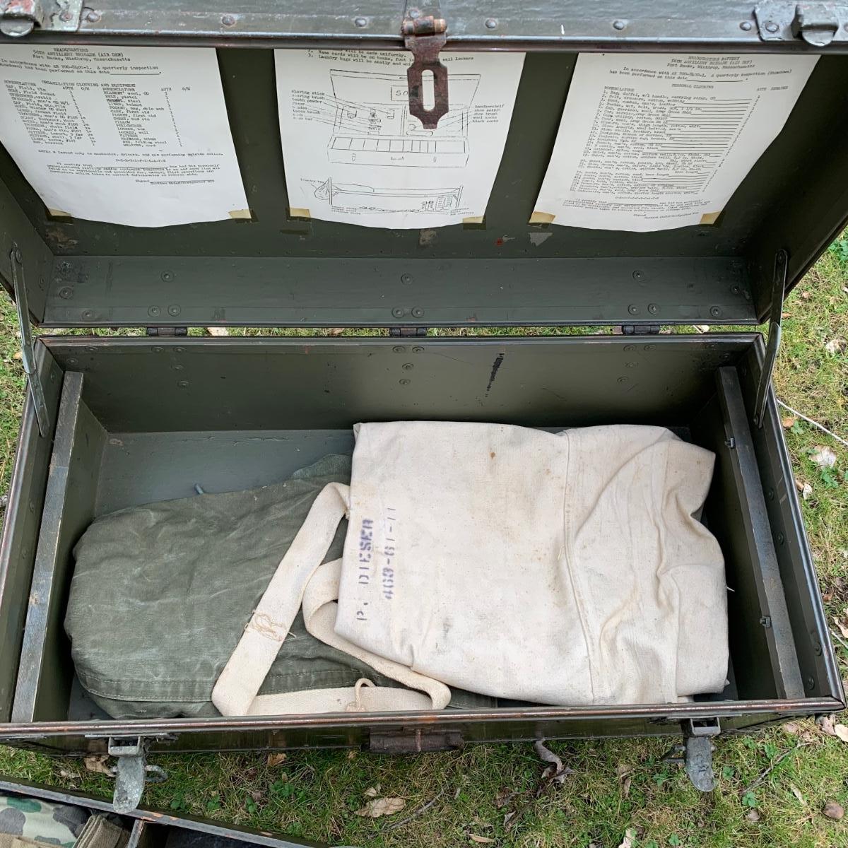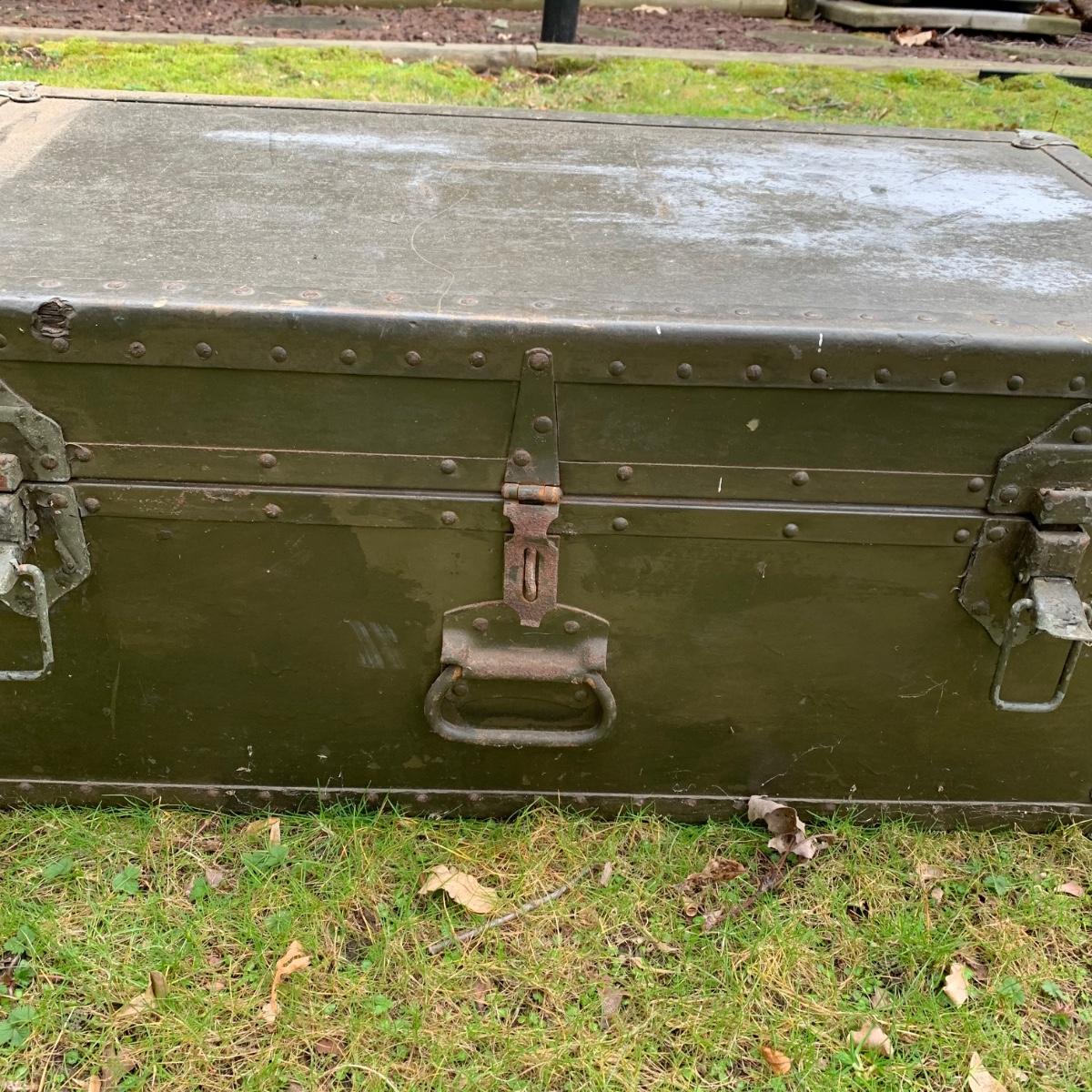 One footlocker of unsorted military items. Footlocker measures 32 x 16 x 13 inches.