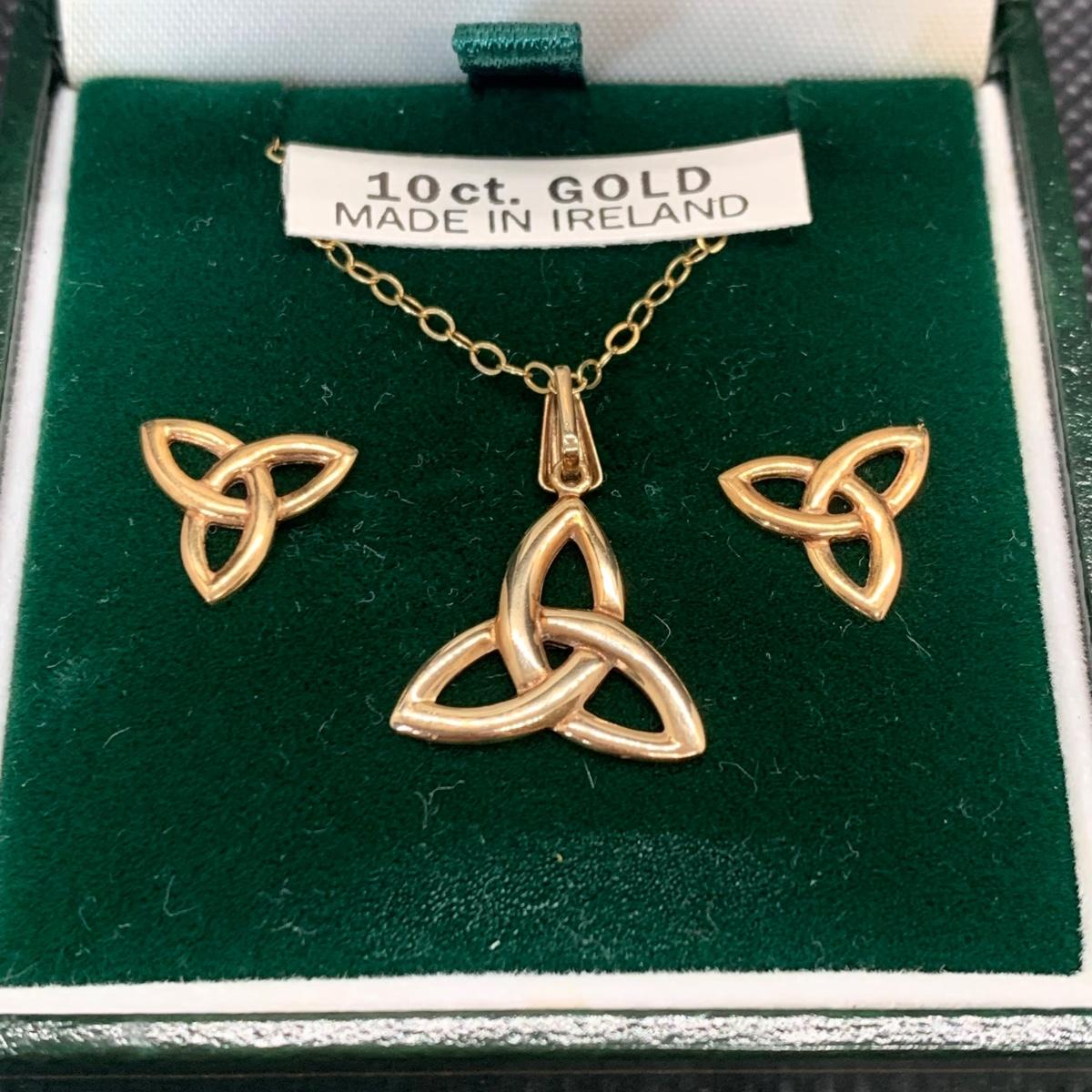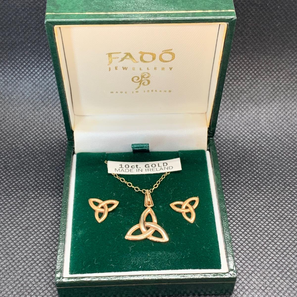 Lot 172: Fado Made in Ireland 10k Gold Necklace & Earring Set, Tw 2.97g