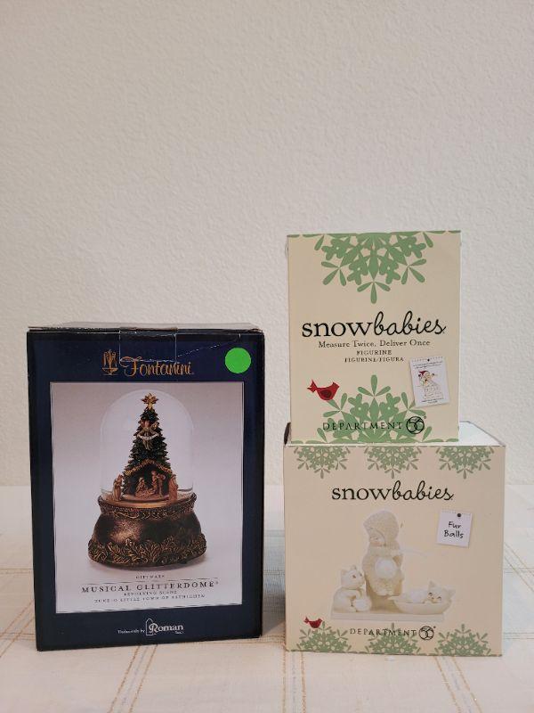 Lot 172: Assorted Dept. 56 SnowBabies Christmas Figures + Musical Glitterdome