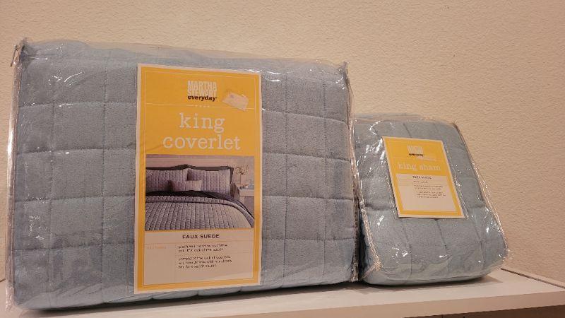Lot 172: MARTHA STEWART New Faux Suede King Size COVERLET and (2) Shams