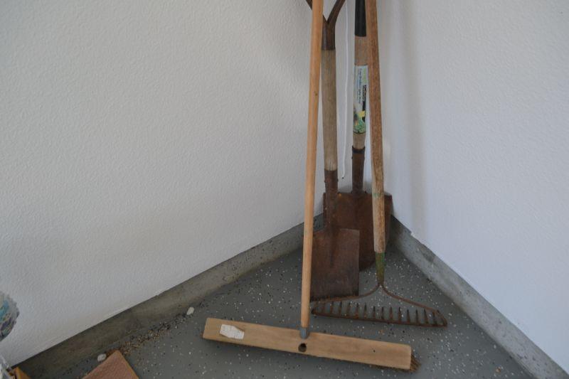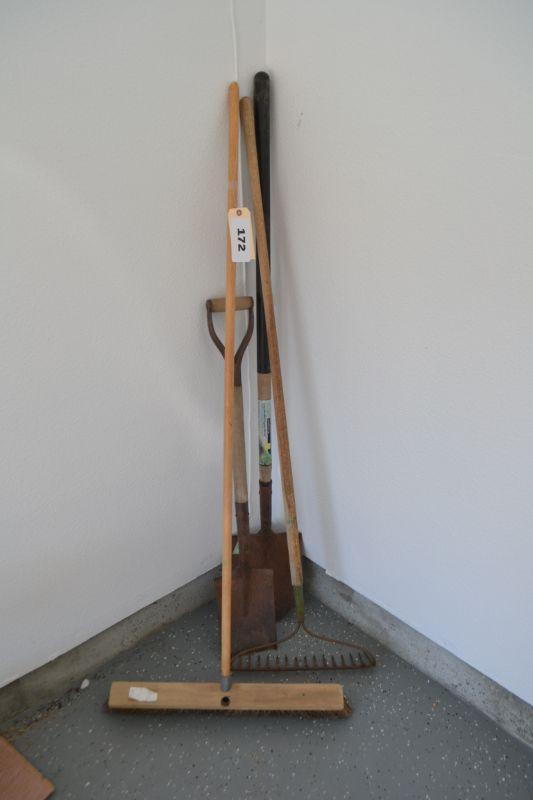 LOT 172  LAWN TOOLS AND PUSH BROOM