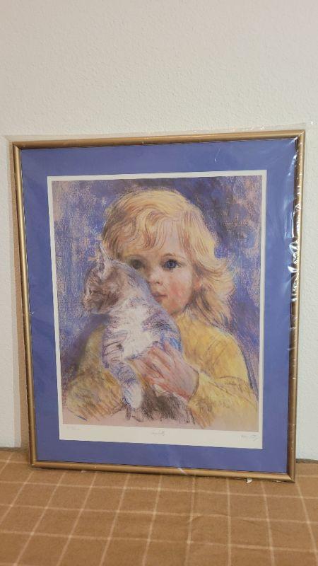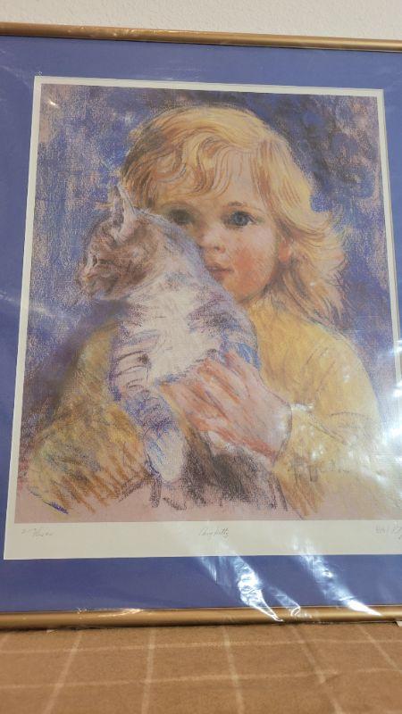Lot 172: Vintage Framed Fine Art Numbered and Signed "My Kitty" Print