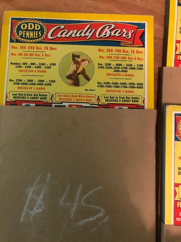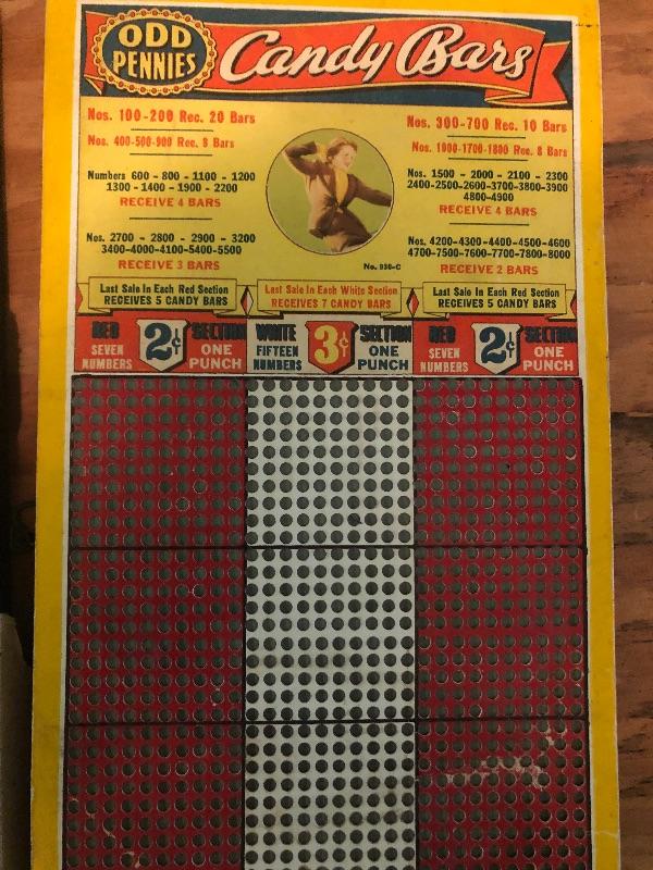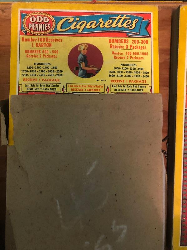 6 boards: odd pennies, candy bars with pin ups and cigarettes with pin ups : Vintage used condition