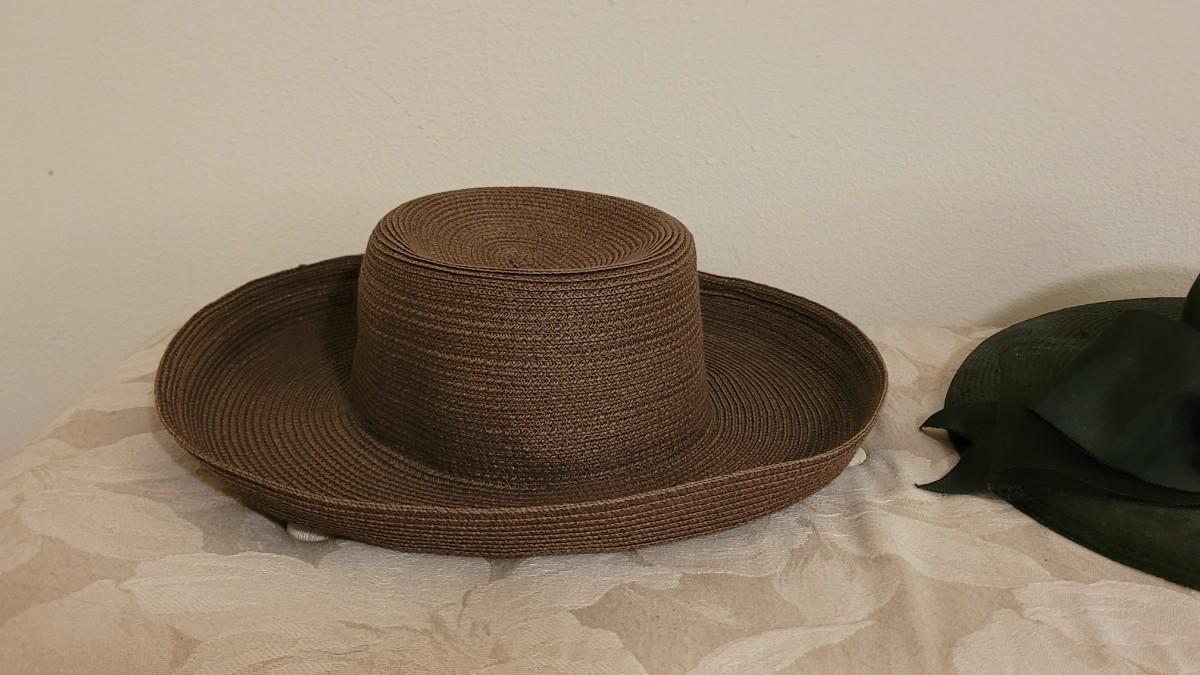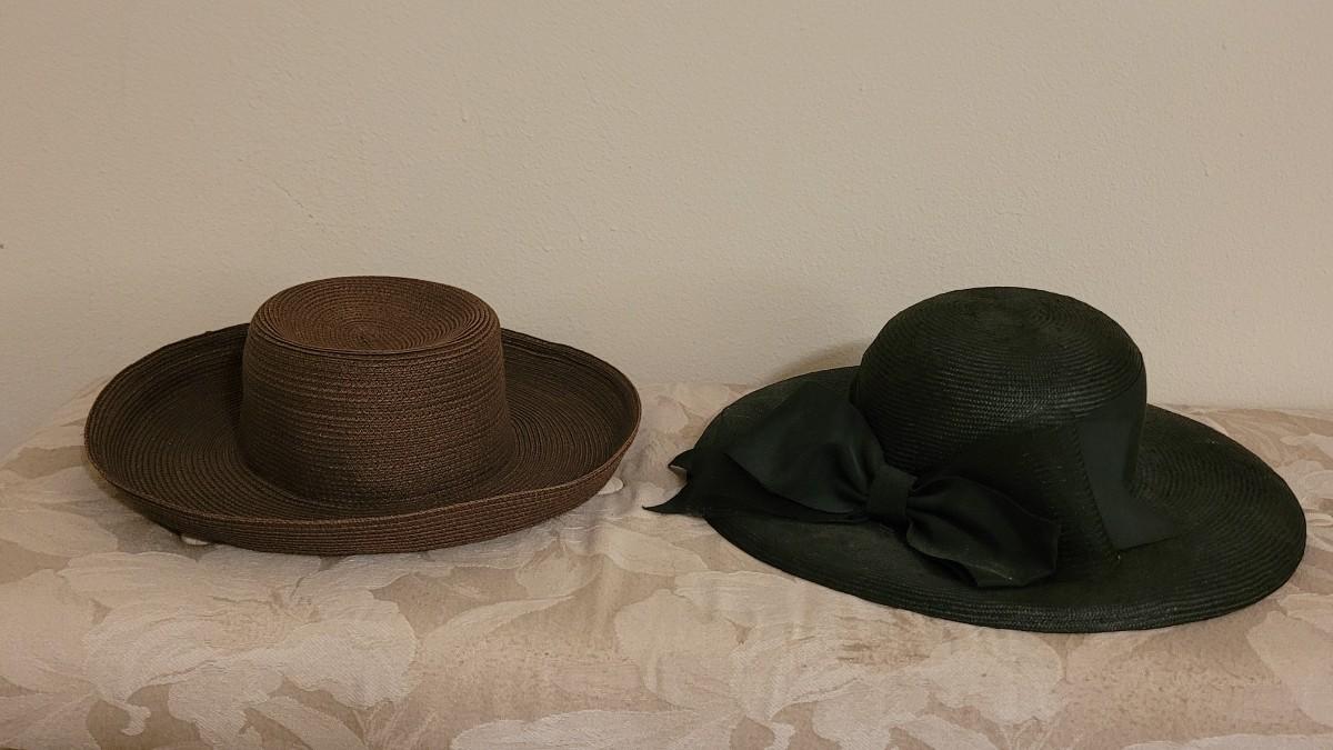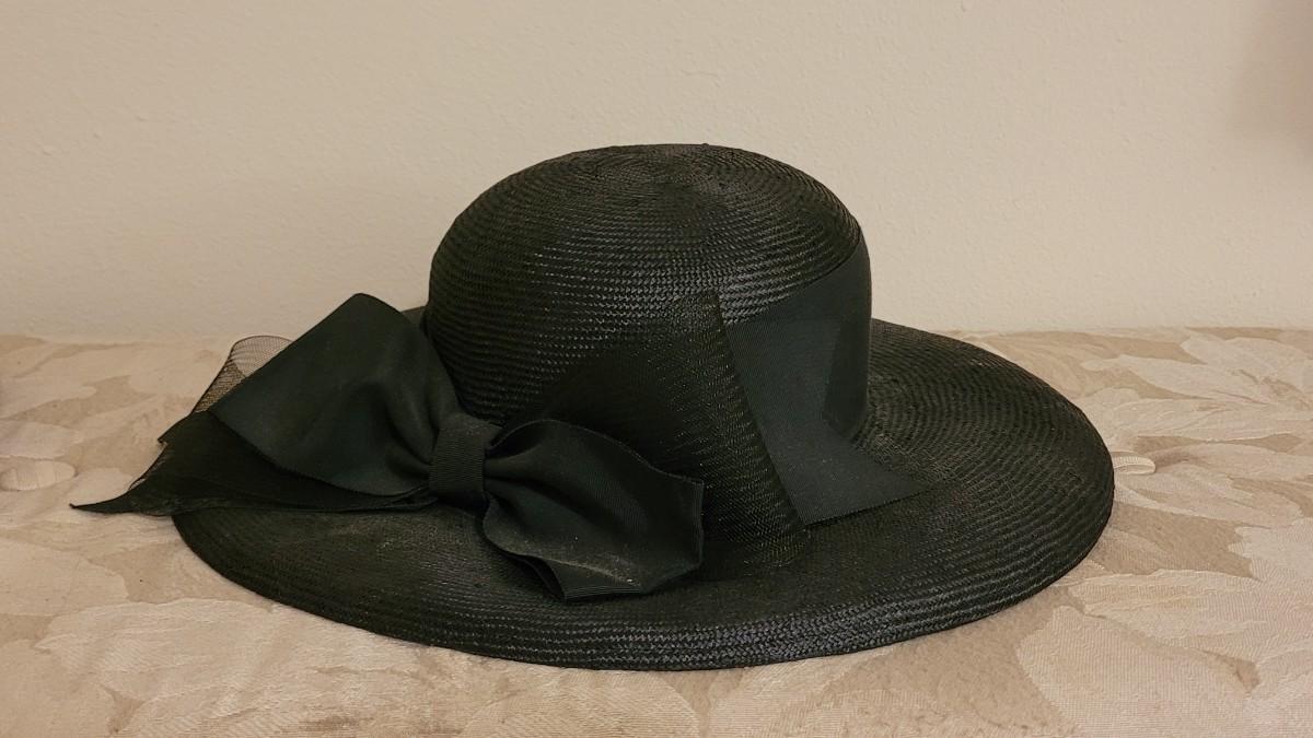 Lot 172: Miss Bierner Black Hat with Bow and Brown Woven Hat
