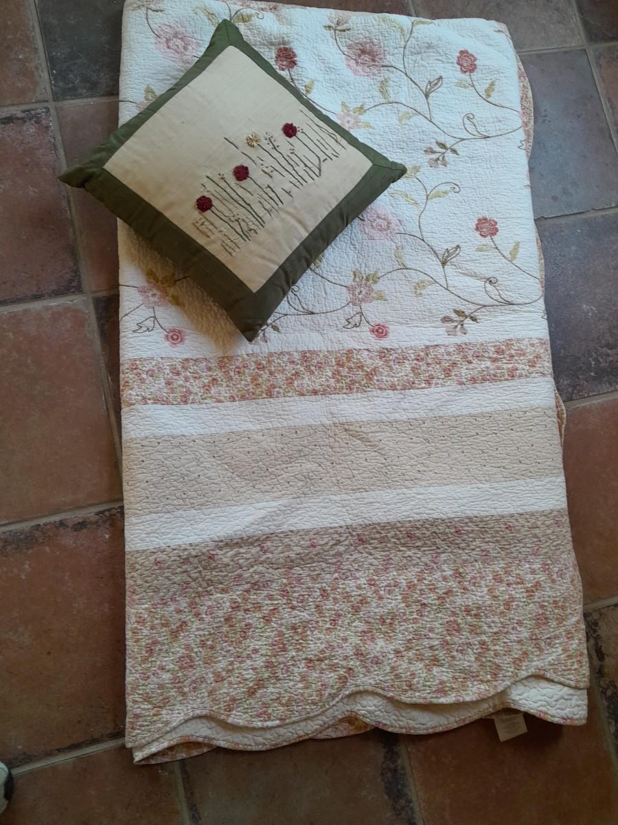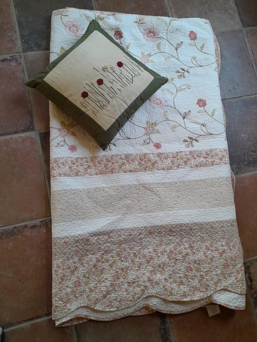 BETTER HOMES BEAUTIFUL KING SIZE PRISCILLA QUILT 104" X 92" WITH THROW PILLOW