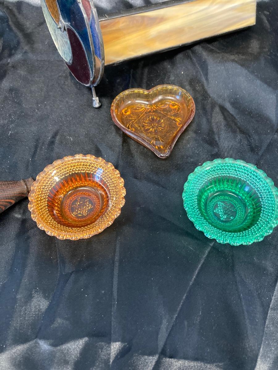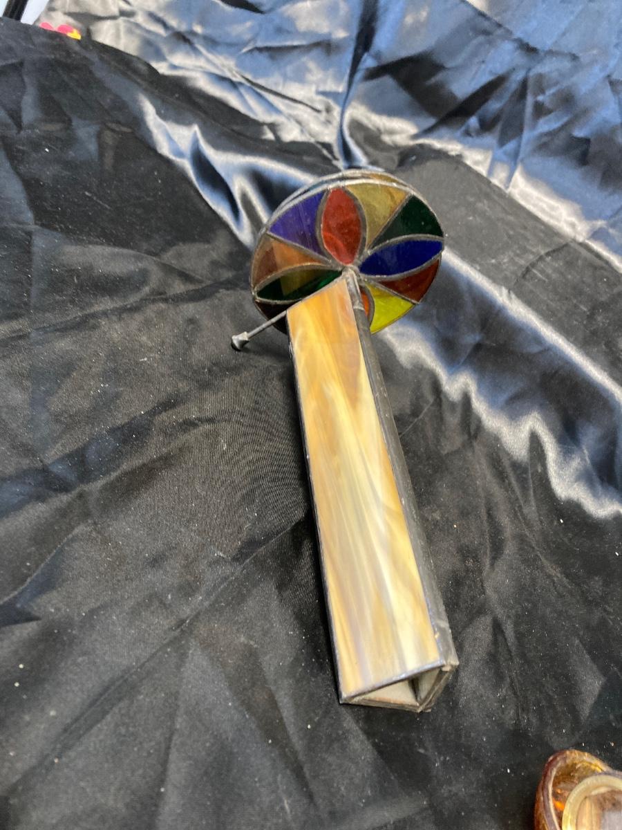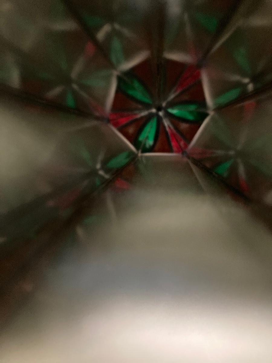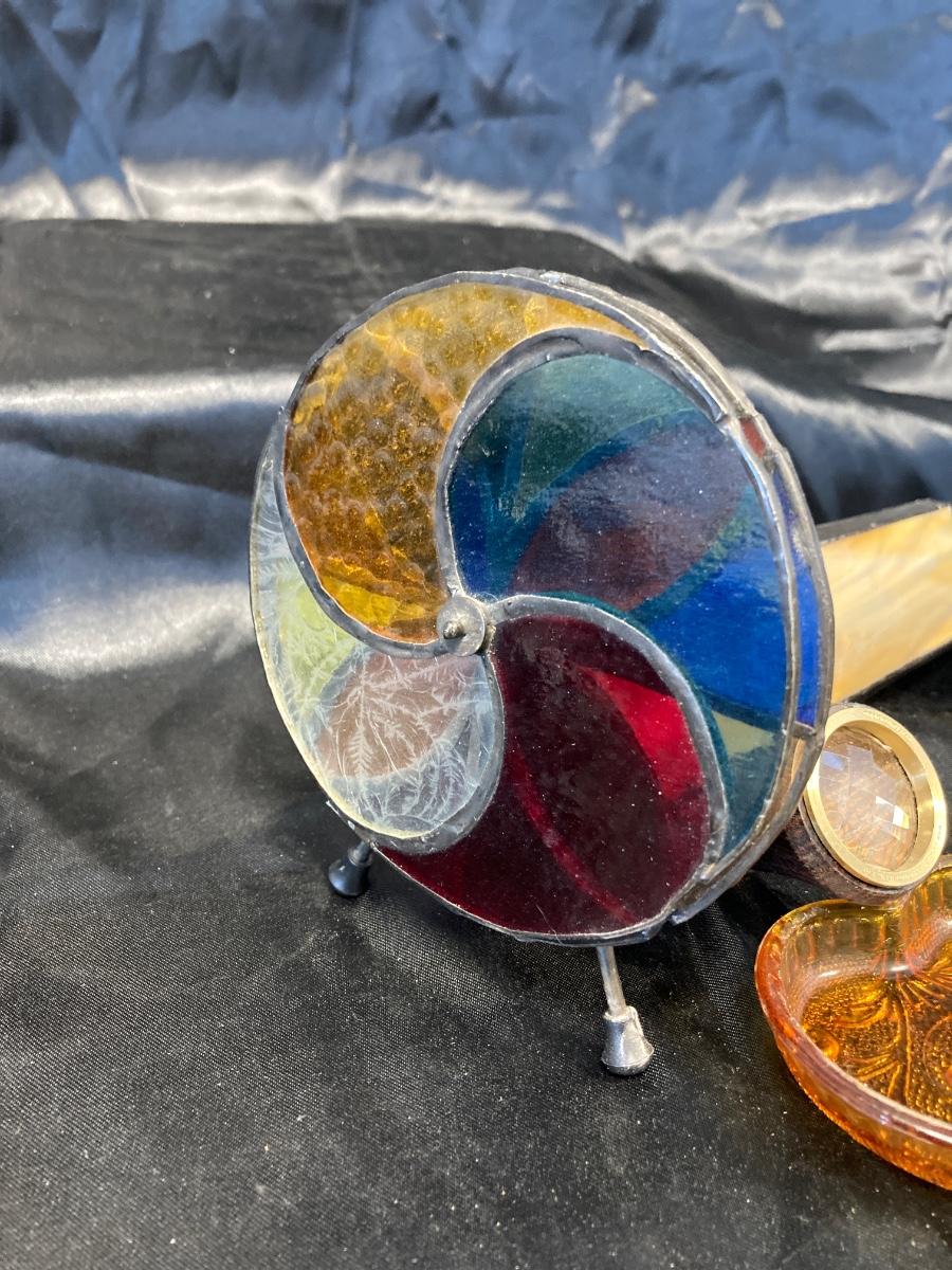 A BEAUTIFUL ALL STAINED GLASS KALIEDISCOPE, MATCHING COLORED GLASS & MORE