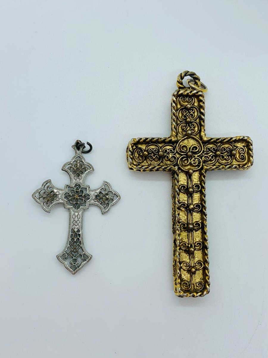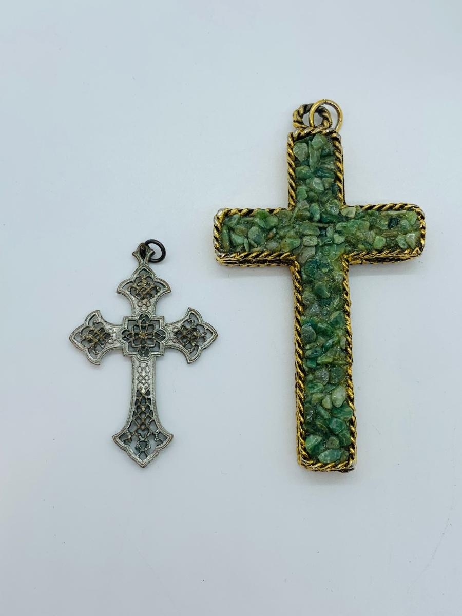 Lot 172: Vintage Button Covers, Cross Pendants, Trinket Dishes, Sterling Silver Chain w/Pen