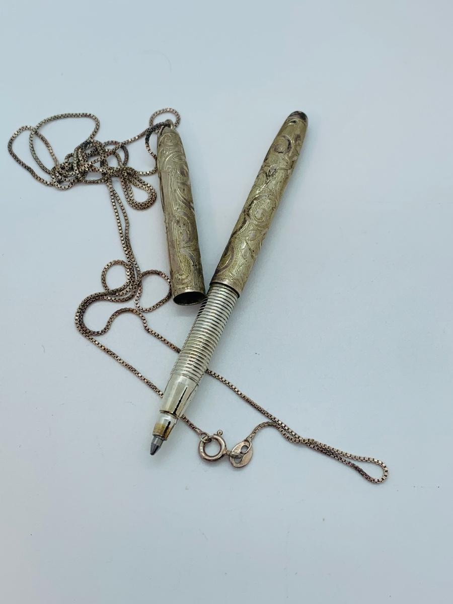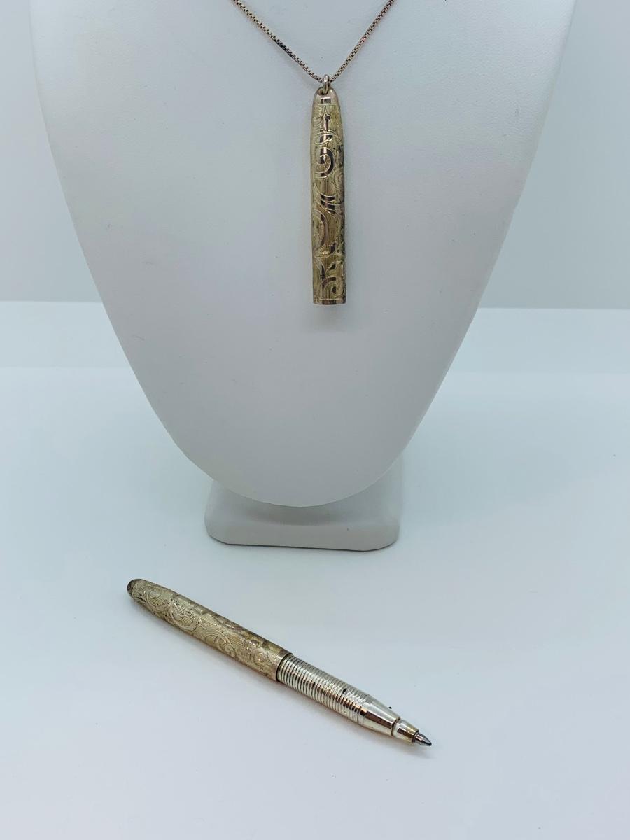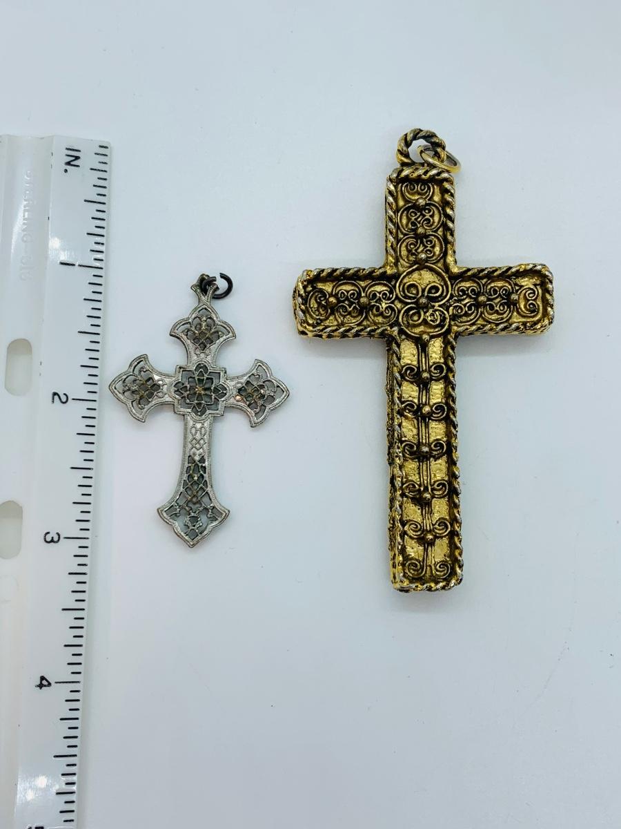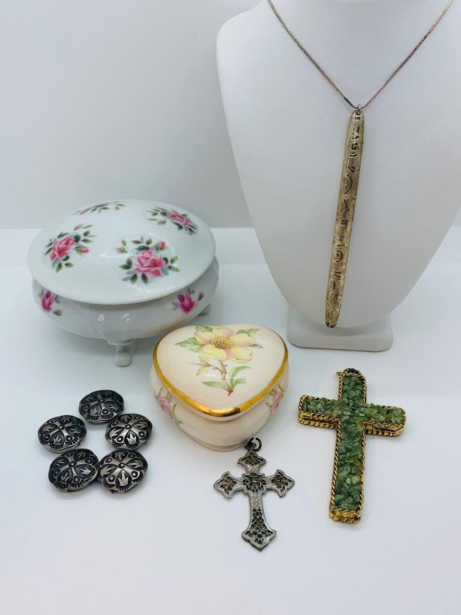 Lot 172: Vintage Button Covers, Cross Pendants, Trinket Dishes,  Sterling Silver Chain w/Pen