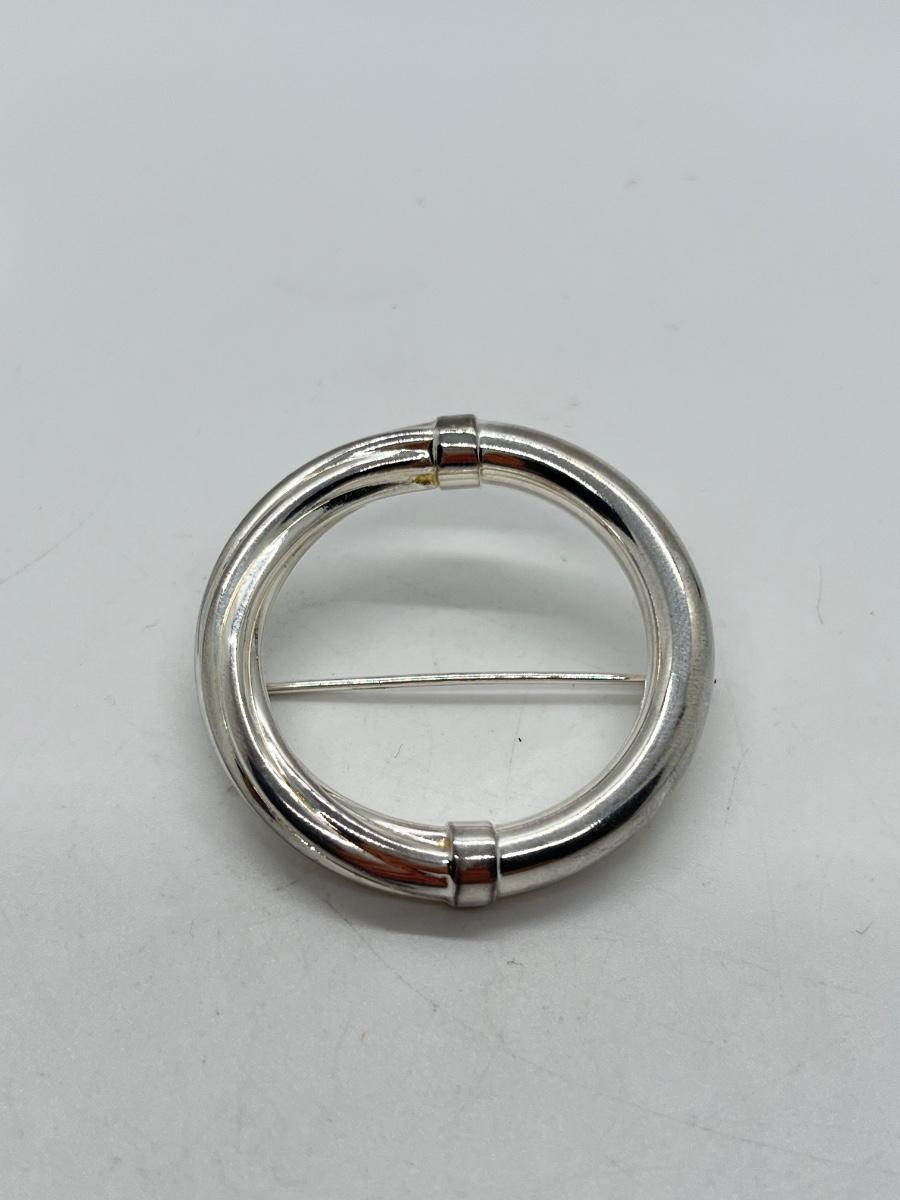 LOT 172: Sterling Silver 925 "CI" Brooch + Vintage Pierced Silver Earrings