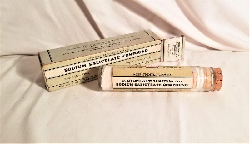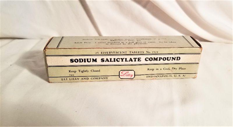 Unused antique pharmacy compound - Sodium Salicylate Compound - in original box. Sold as a collectible and oddity only - not for use or consumption.
