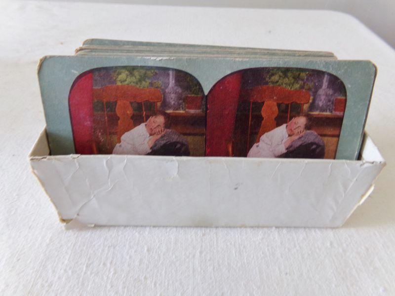 ANTIQUE STEREOSCOPE IN VG CONDITION AND A BOX OF STEREOSCOPE IMAGES