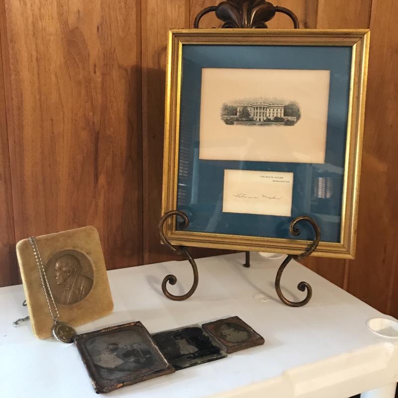 These collectibles include a framed picture of the White House with Patricia Nixon’s signature. There are also two collectible coins (see pic) and three vintage photographs. Shipping available.