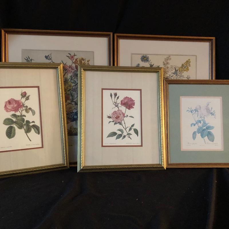Bring nature inside with these five framed and matted floral prints. Lot includes two sets of matching frames with similar prints and one by itself. Largest frame measures 18” x 22.75”.