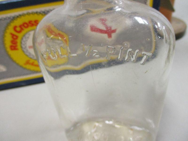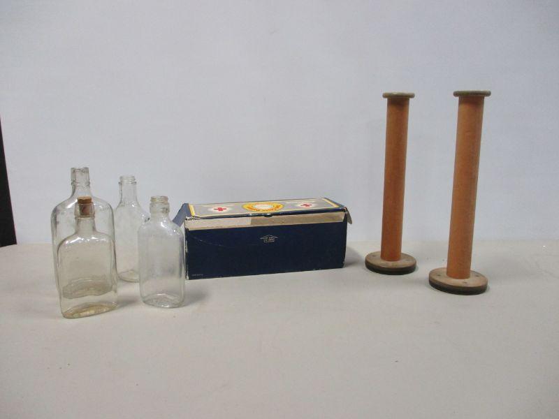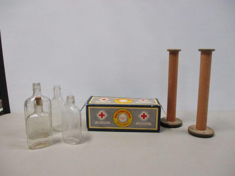 Lot 172 - Glass Bottles - Castor Oil W/ Stopper - Cotton Mill Spindles - Red Cross Cotton