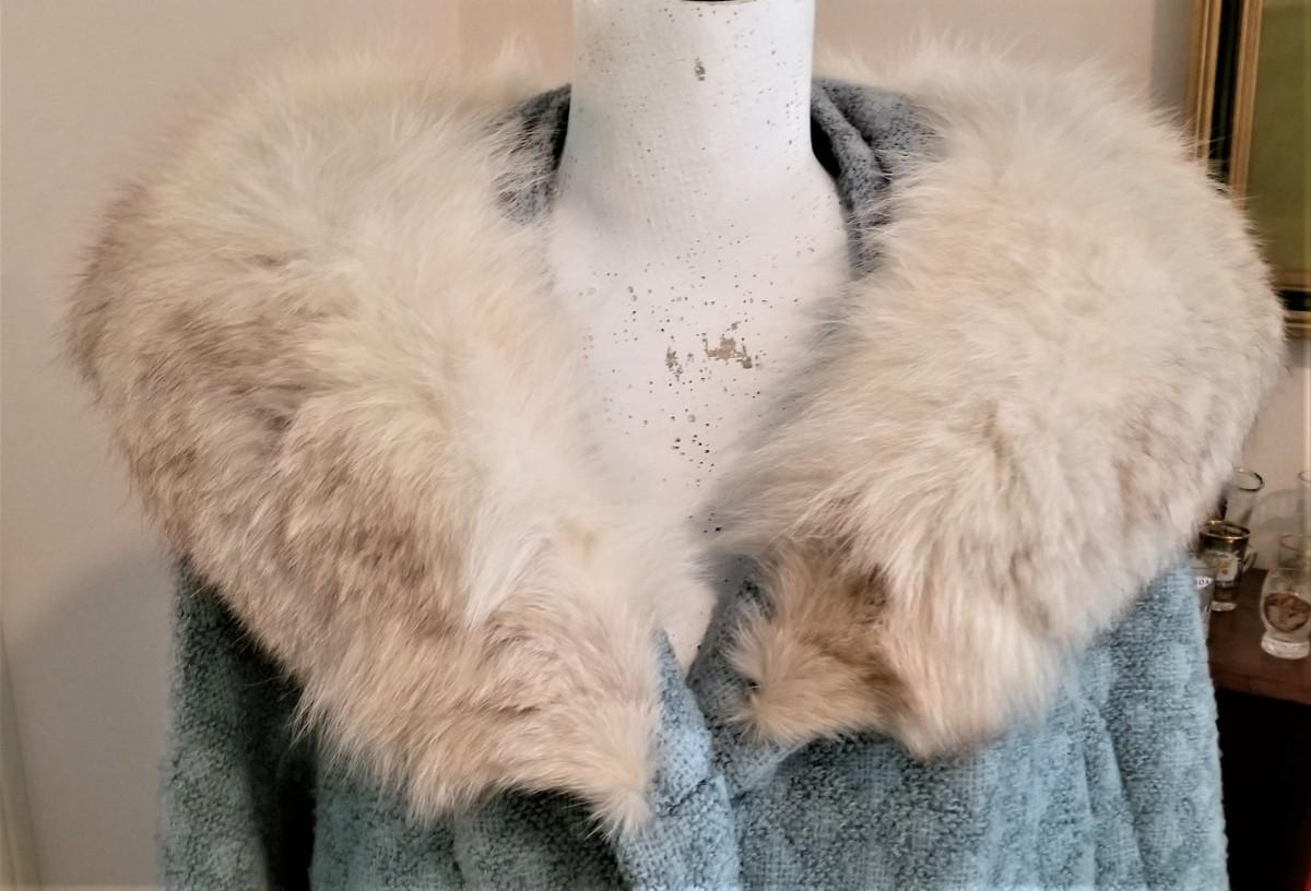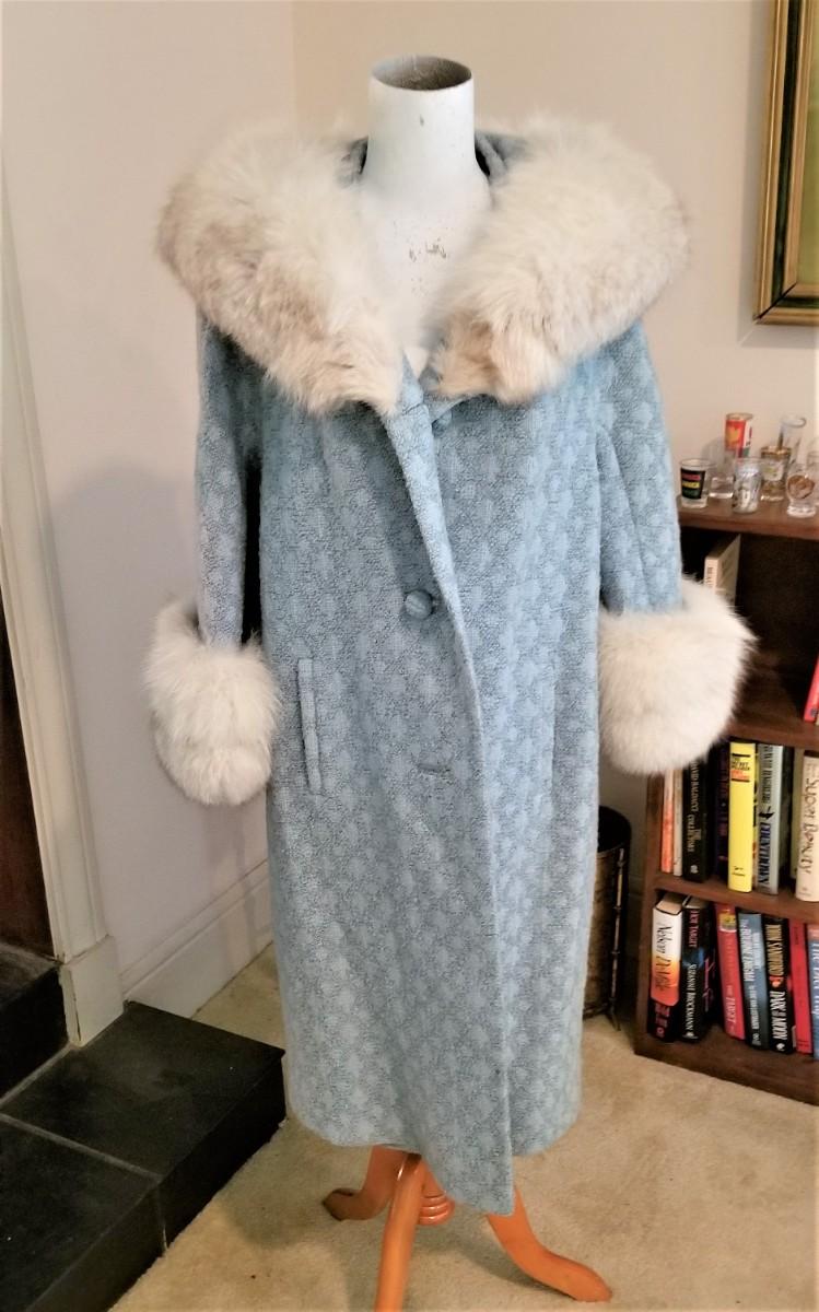 This vintage coat from Goldrings (New Orleans) has fox trim on the collar and cuffs - I am guessing size 8-10 would wear this best. Good vintage condition. Lining is good - 3/4 length sleeves. 1960's.