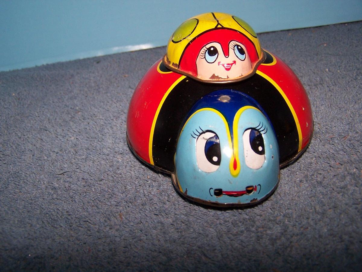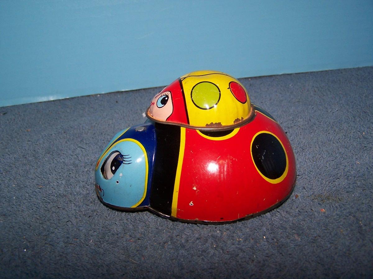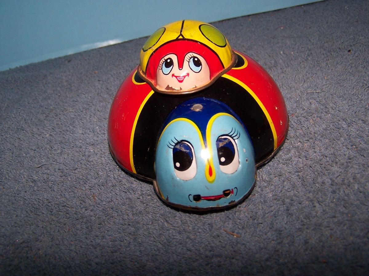 THESE ARE GREAT VINTAGE TIN LITHO CRITTERS! FRICTION.. LADYBUGS ARE WINDUP, SPRING IS BROKEN, 5'' ACROSS.. ALL TOYS HAVE BEEN PLAYED WITH..