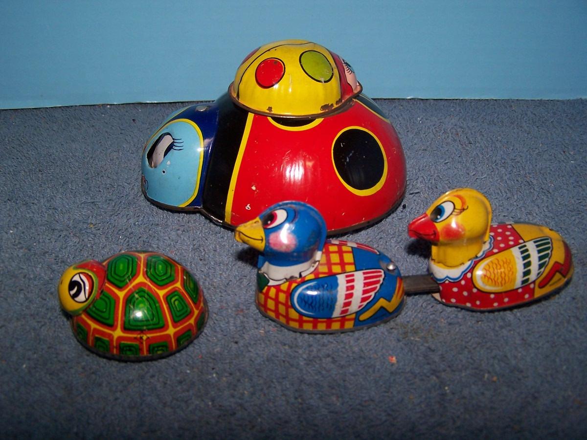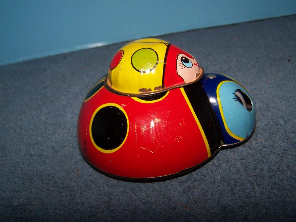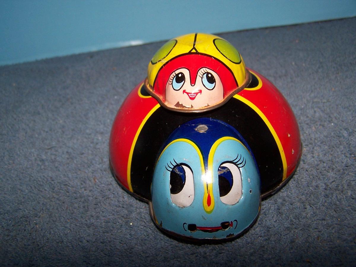 THESE ARE GREAT VINTAGE TIN LITHO CRITTERS! FRICTION.. LADYBUGS ARE WINDUP, SPRING IS BROKEN, 5'' ACROSS.. ALL TOYS HAVE BEEN PLAYED WITH..