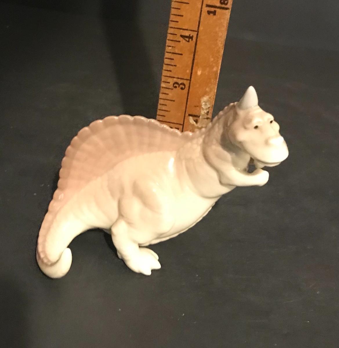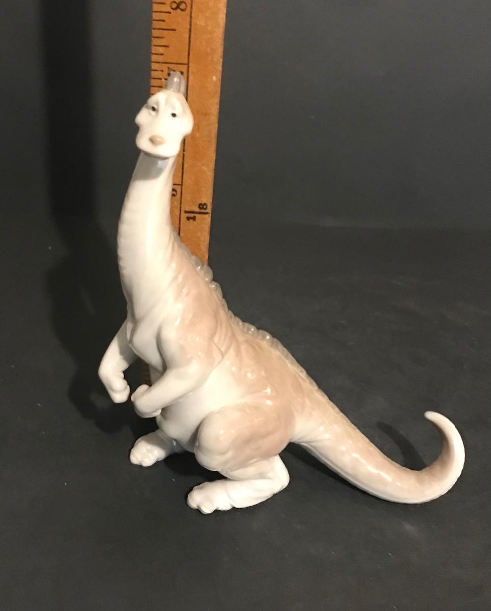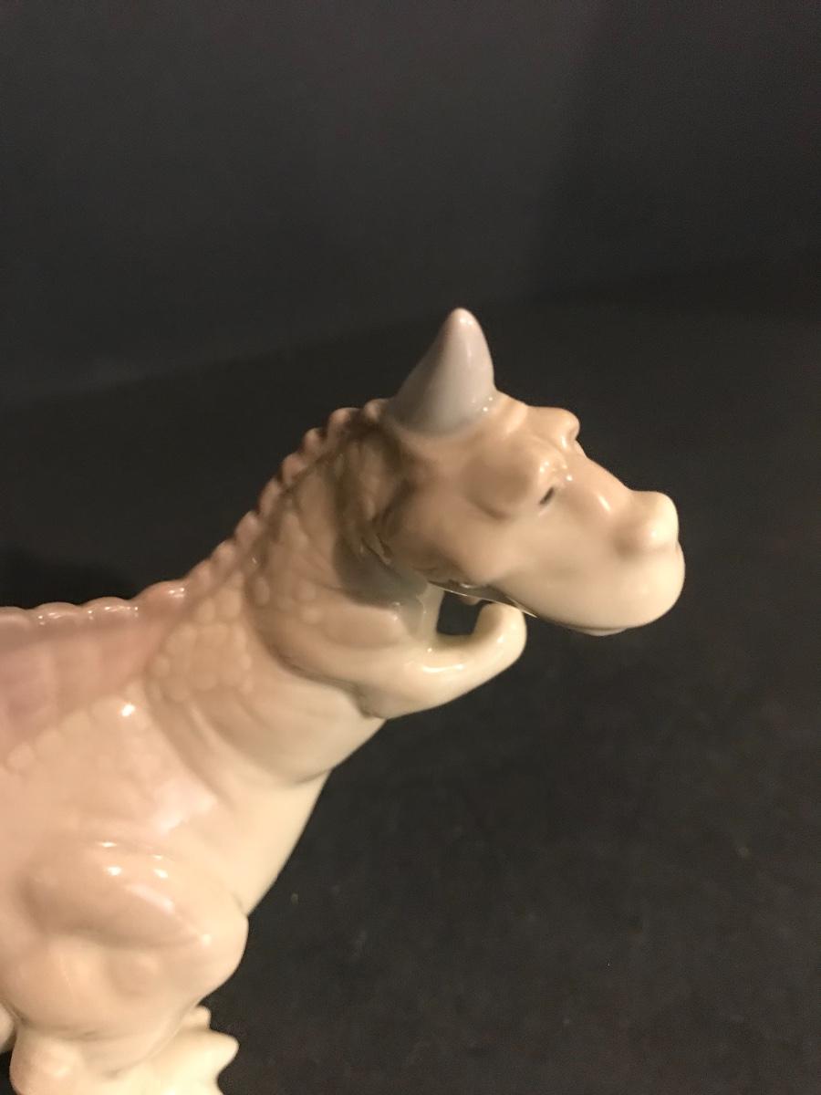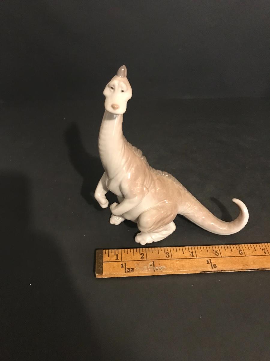 Lladro Dinosaurs 5- Piece Set - Spike #7543, Brutus #7544, Rocky #7545, Stretch #7546 And Rex #7547. All Lladros are in excellent vintage condition without original boxes, except where noted. All items have been inspected and any damages or imperfections have been photographed and noted to the best of our knowledge and ability. It is the responsibility of the buyer to inspect all pictures, as they are the best representation of the items. The pictures show condition, measurements if taken, and what is included in the lot. Upon pickup, it is the responsibility of the buyer to inspect their items prior to leaving the premises. Once the items leave the premises, there will be no refunds or returns. Buyers are also responsible for bringing their own boxes and packing materials for their items. Thank you.