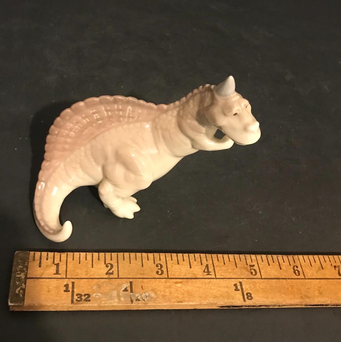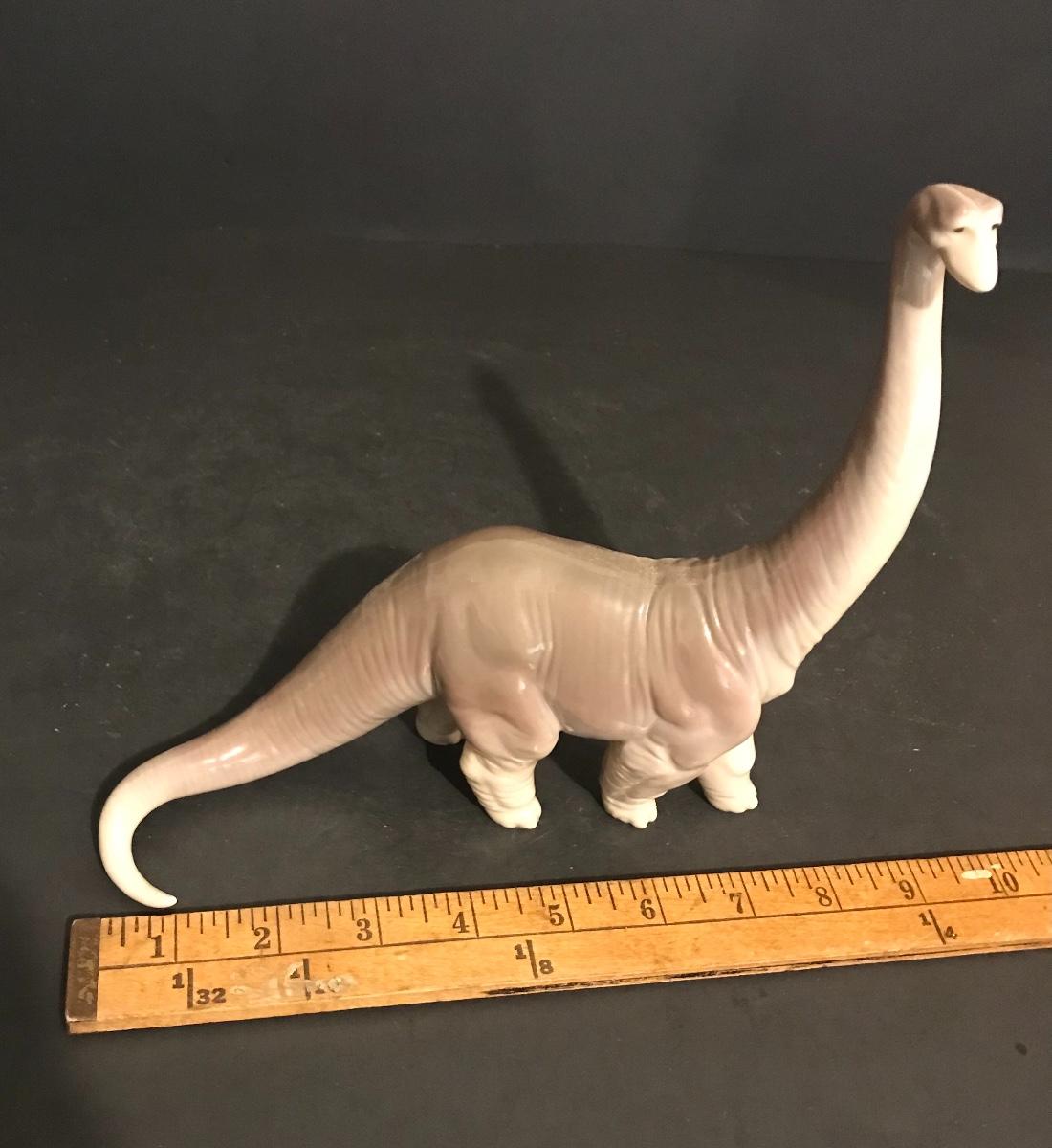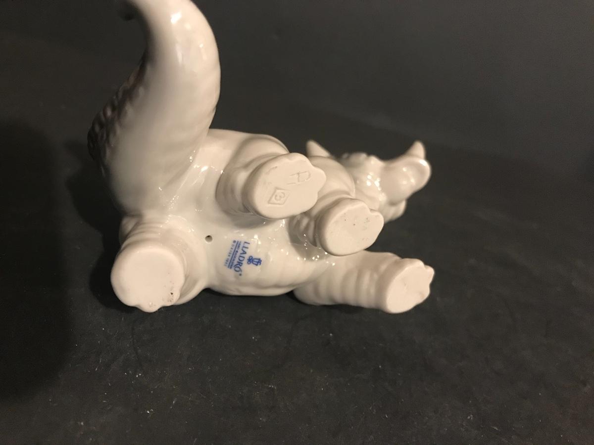 Lladro Dinosaurs 5- Piece Set - Spike #7543, Brutus #7544, Rocky #7545, Stretch #7546 And Rex #7547. All Lladros are in excellent vintage condition without original boxes, except where noted. All items have been inspected and any damages or imperfections have been photographed and noted to the best of our knowledge and ability. It is the responsibility of the buyer to inspect all pictures, as they are the best representation of the items. The pictures show condition, measurements if taken, and what is included in the lot. Upon pickup, it is the responsibility of the buyer to inspect their items prior to leaving the premises. Once the items leave the premises, there will be no refunds or returns. Buyers are also responsible for bringing their own boxes and packing materials for their items. Thank you.