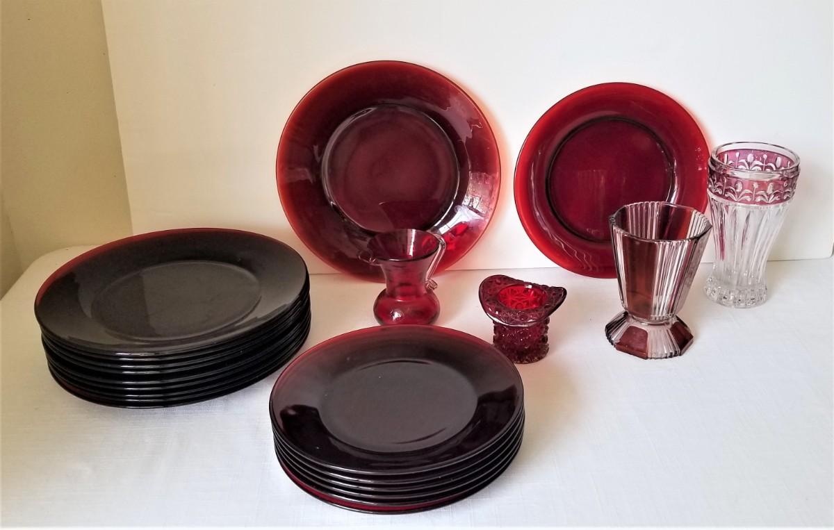 Lot #172 Lot of Ruby Flashed Glass - Dinnerware