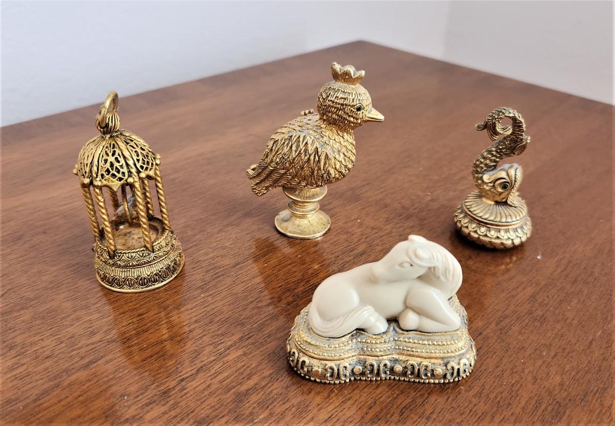 These are from the 1960's and sold for their collectible value, not the scent inside. You get all you see here - Toujours Moi Love Birds, Le Coq d'Or, Le Chaval, and Le Dauphin. You can find all of them on ebay. Vintage condition.