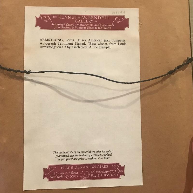 Framed unique photo and autographed card by Louis Armstrong from the Kenneth W. Randell Gallery in NYC. (no COA) Also includes a colorful statue of the famous trumpeter that stands approx. 12” tall. Framed picture measures 10” x 14.5”. Shipping Available.