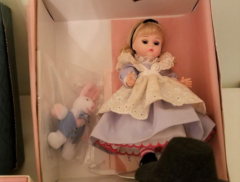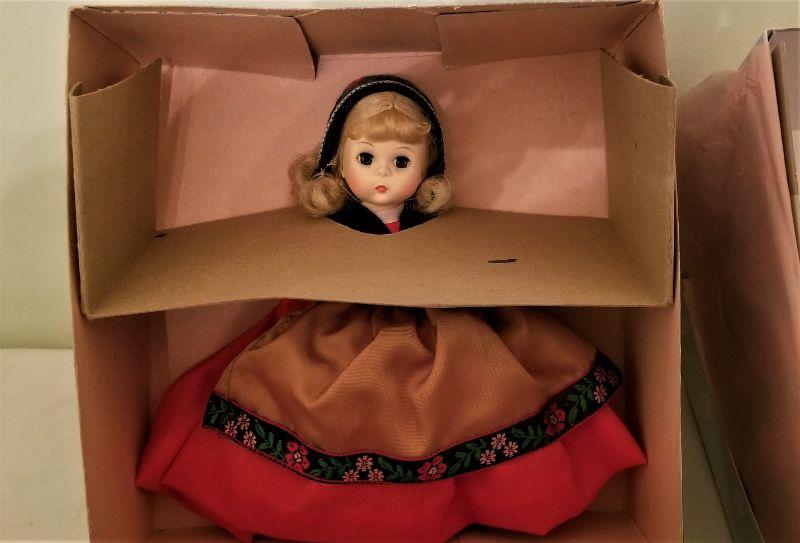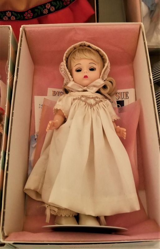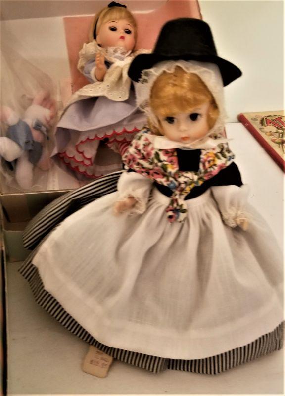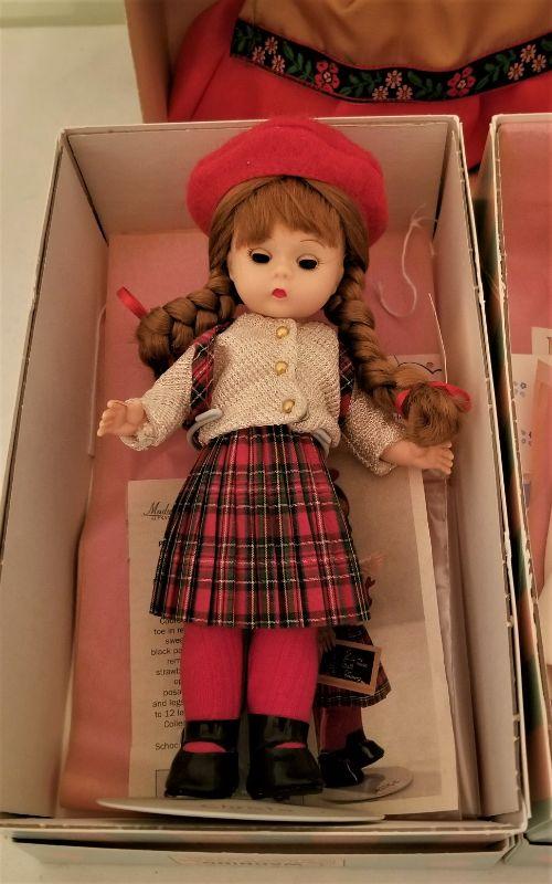 You get everything you see here: Sweden, Alice in Wonderland (original price tag on box - 49.99), Now I Lay me Down to Sleep, Back to School, and another doll in Colonial attire (has Maison Blanche tag attached). All are boxes except the colonial doll. Noon appear to be played with - good condition.