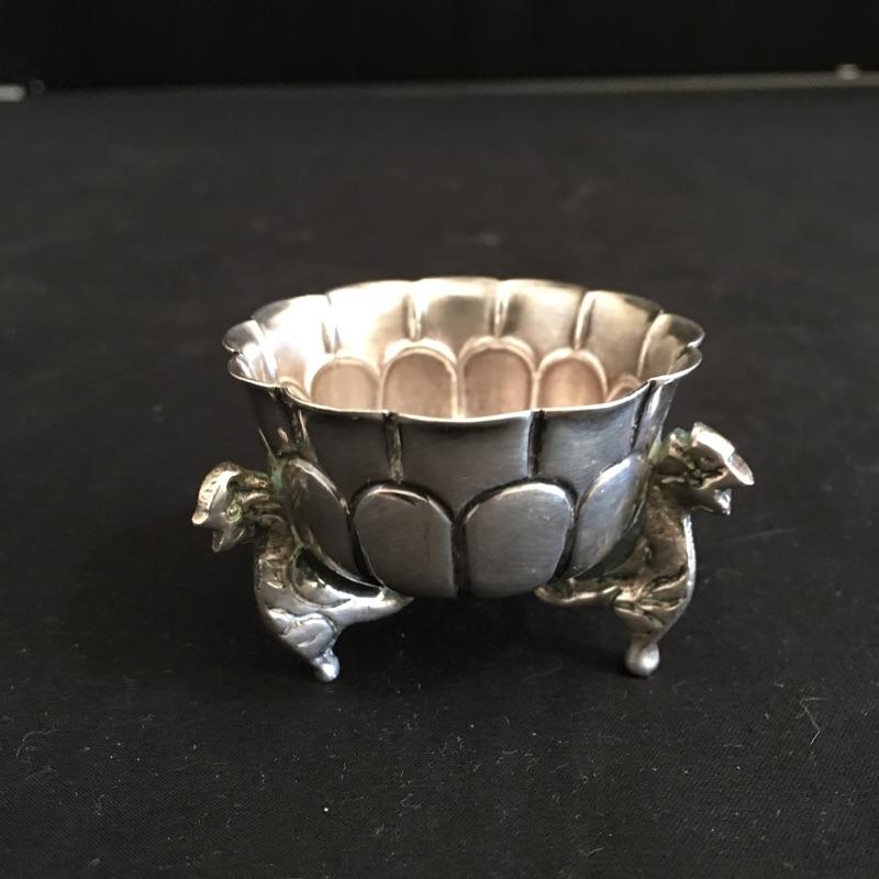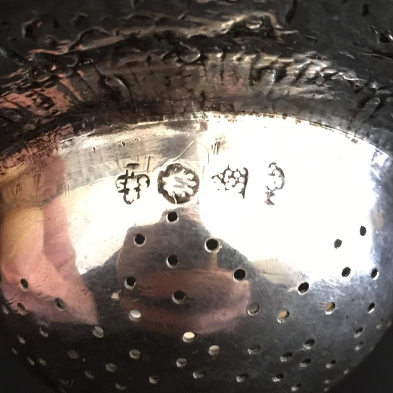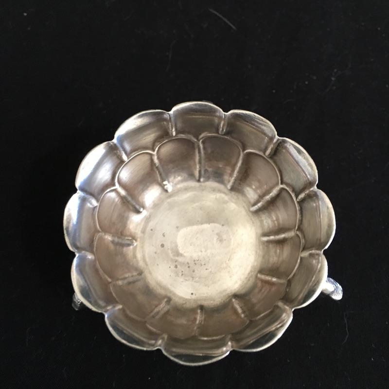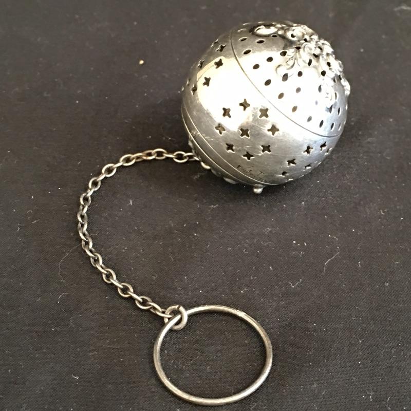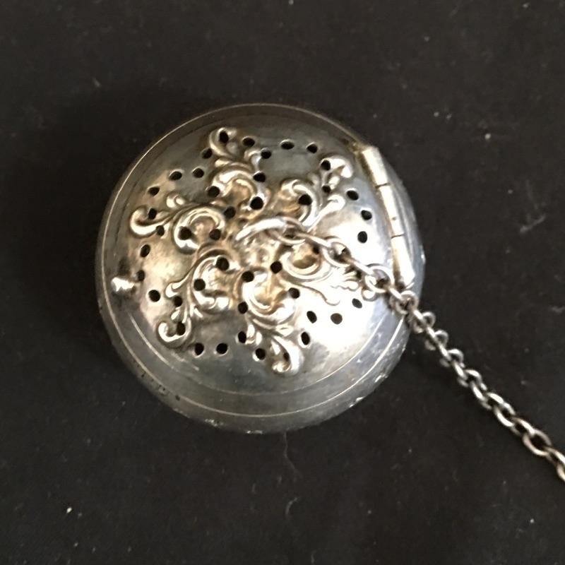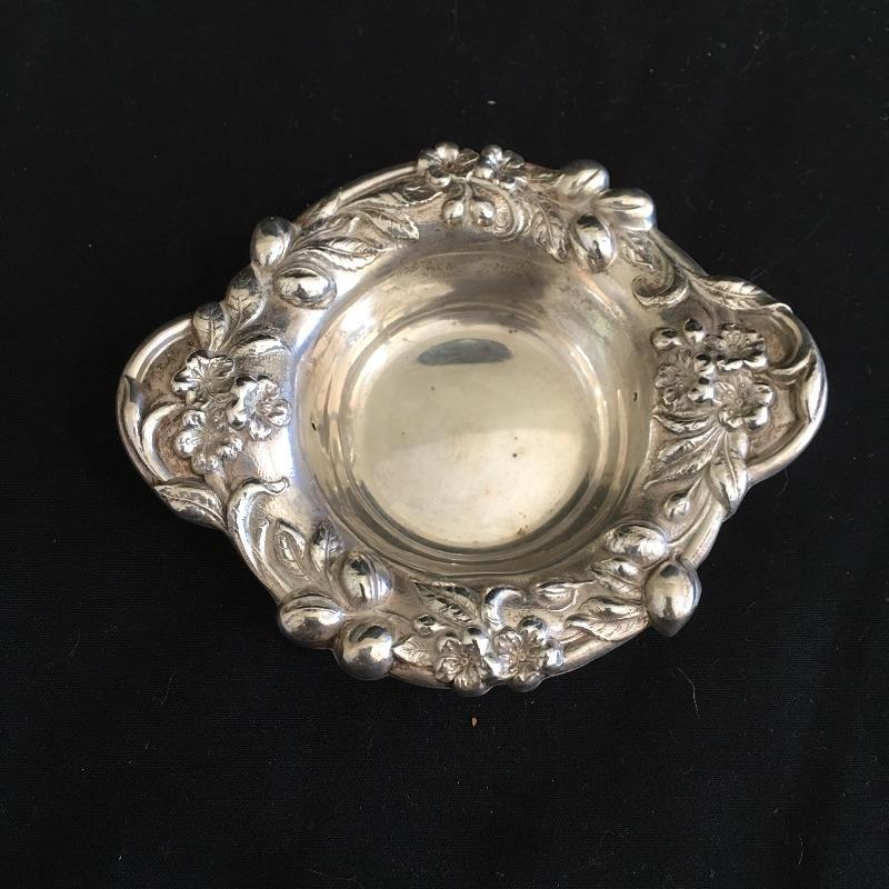 Classic mini Tiffany & Co. sterling bowl, footed sterling bowl, Reed & Barton sterling bowl, Sterling tea strainer ball and tea strainer that has markings, but no sterling mark. Tiffany bowl measures 1.75”D x .875” tall. Starting bid is close to melt value.