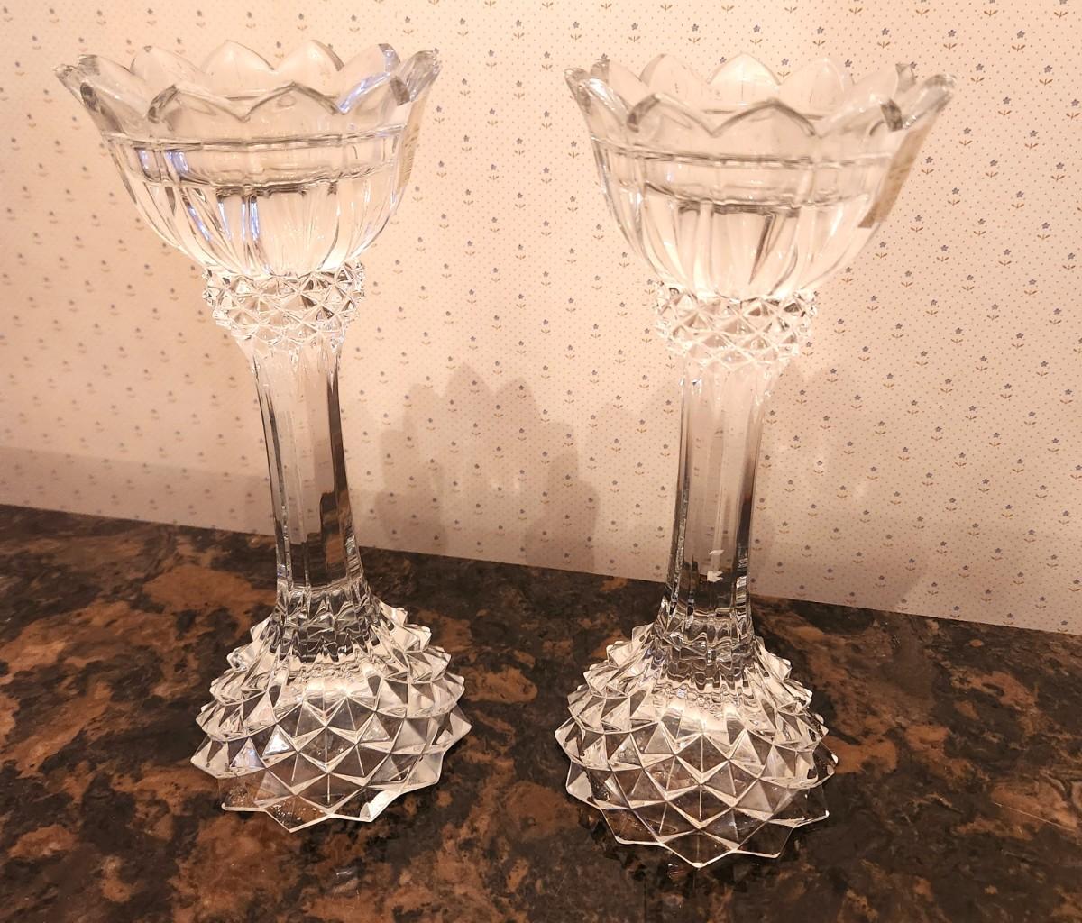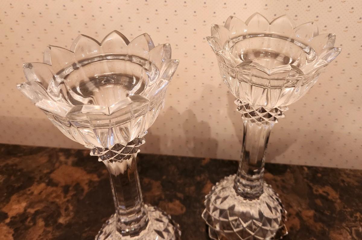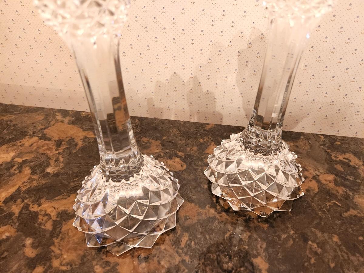 Nice pair of Crystal candlesticks - heavy - each 10" tall. Good condition.